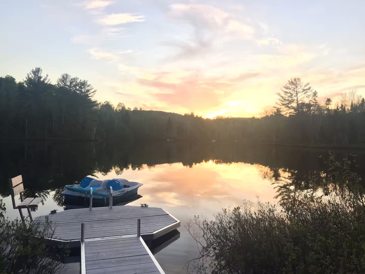 El Perché-sur-la-rivière es una encantadora cabaña de madera redonda, de alrededor de 1962, completamente restaurada, orientada al sur. Literalmente posado sobre el agua. Terraza para tomar el sol, comer, dormir. Árboles gigantes. 45 minutos de Montreal. Luminoso, tranquilo. Pasarela peatonal y ciclista hacia tiendas, restaurantes y bosques. Carril bici en la puerta. Para el descanso, el teletrabajo, la creación, el aire libre. --BBQ en el lugar -- Senderismo y esquí de fondo en los alrededores