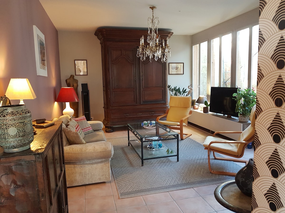 ¡Le va a gustar nuestro estudio por su tranquilidad y su proximidad al centro de la ciudad (1000 m) y la estación de tren SNCF (750 m), sin las molestias! Estudio con entrada independiente, de nuestra vivienda ( 3 escalones para acceder), con terraza privada en un jardín paisajístico. Viajero(s), encontrará(n) en nuestra casa un entorno verde y relajante para hacer una pausa. La llegada se realizará de acuerdo con nuestras respectivas disponibilidades, acordamos juntos un horario de llegada.