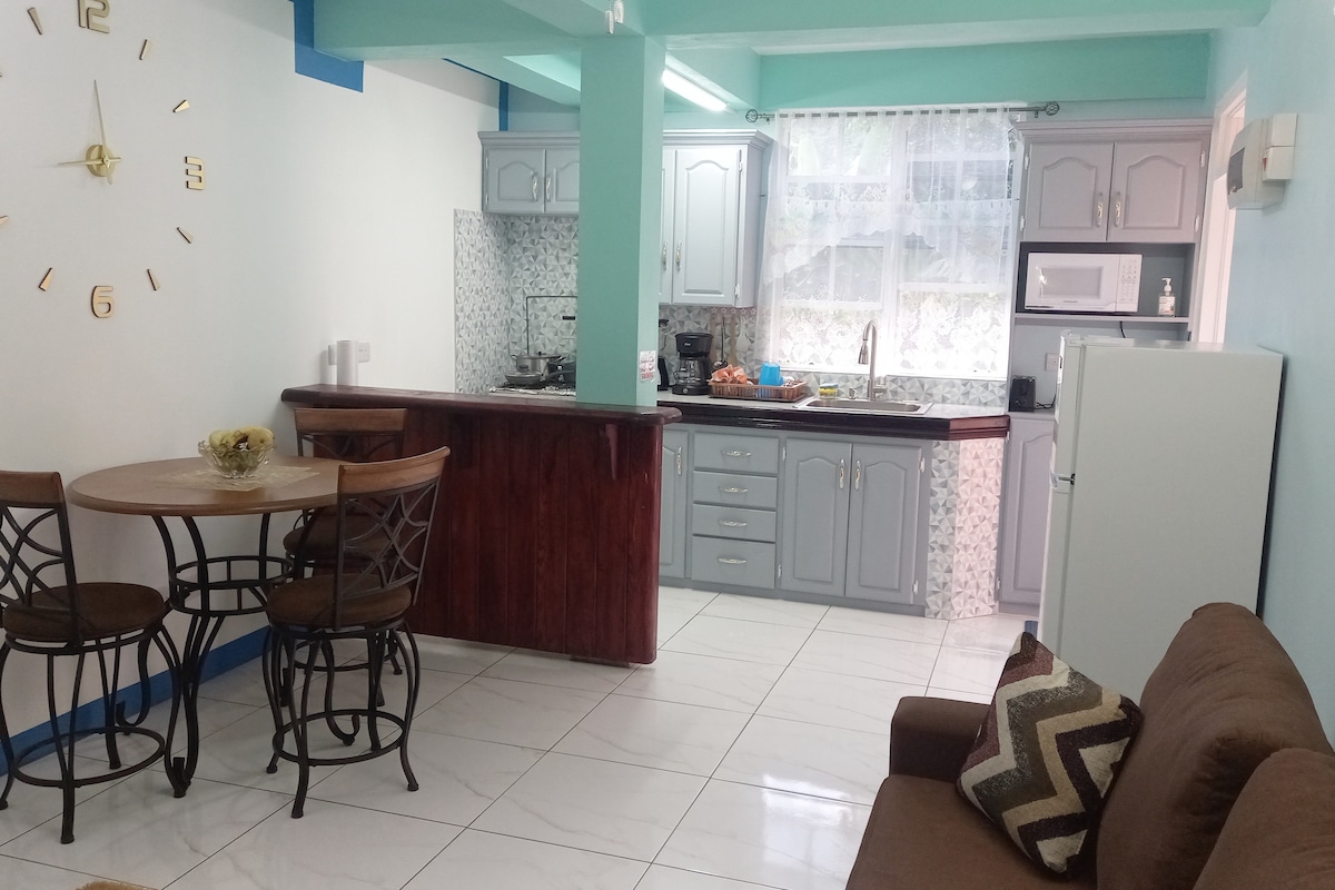 ¡Te damos la bienvenida a tu retiro en la isla! Nuestro espacioso apartamento de 2 dormitorios y 2 baños ofrece comodidad y un ambiente tropical tranquilo, perfecto para parejas, familias, amigos o viajeros de negocios. La sala de estar/comedor de planta abierta, la cocina completa y 2 sofás cama pueden alojar cómodamente hasta 6 huéspedes. Disfruta del jardín, las vistas al mar y las hermosas puestas de sol. Ubicada en Morne Daniel, a solo 10 minutos de Roseau, nuestra casa está cerca de tiendas de comestibles, transporte local y en una ubicación céntrica para explorar las principales atracciones.