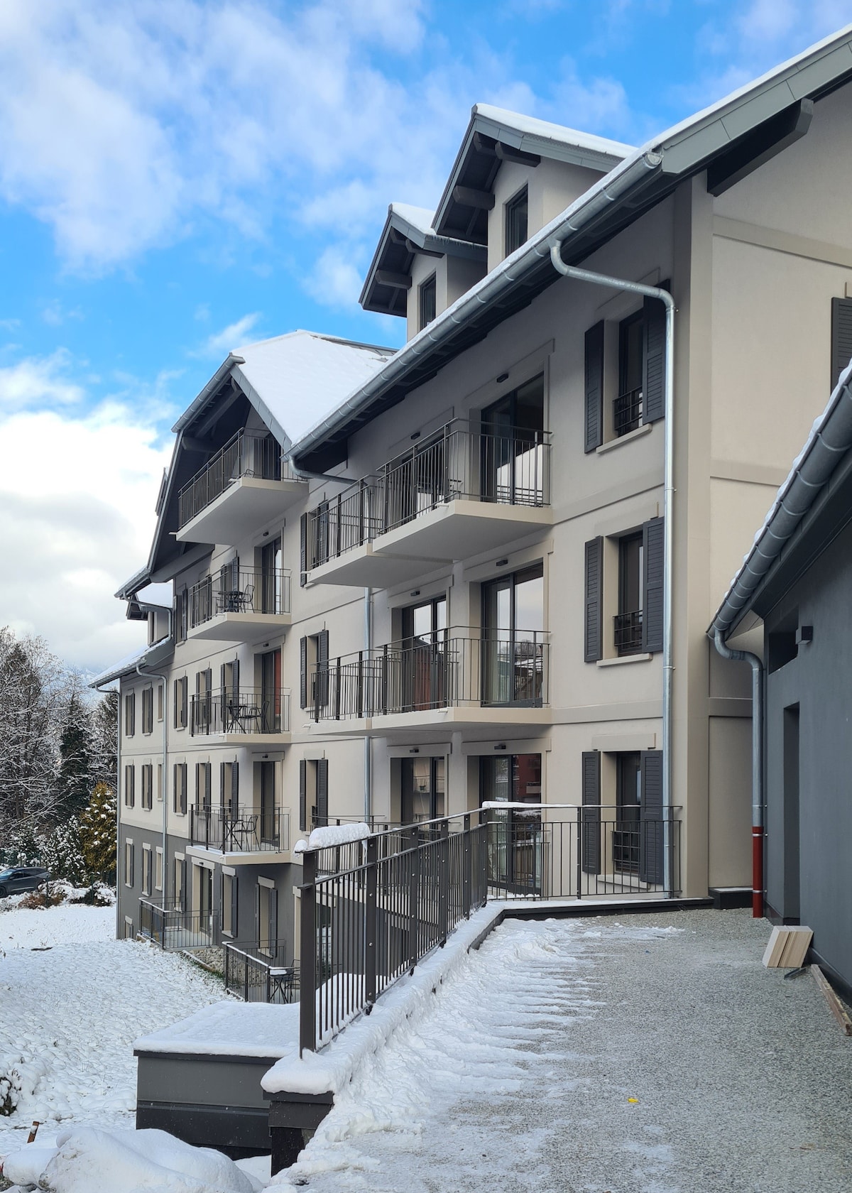 Apartamento reciente de 45 m³ en la planta baja en un chalet individual, que dispone de un gran dormitorio, una cocina equipada, cuarto de baño con bañera y WC, TV y wifi con vistas al valle, el pueblo y el macizo del Mont Blanc. La ubicación permite una salida «con los esquís puestos», parada de transporte al pueblo frente al chalet, o acceso en coche a 5 minutos. Cerca de restaurantes y comercios. Llegada autónoma mediante caja de llaves. ¡Ideal para una pareja o una familia pequeña!