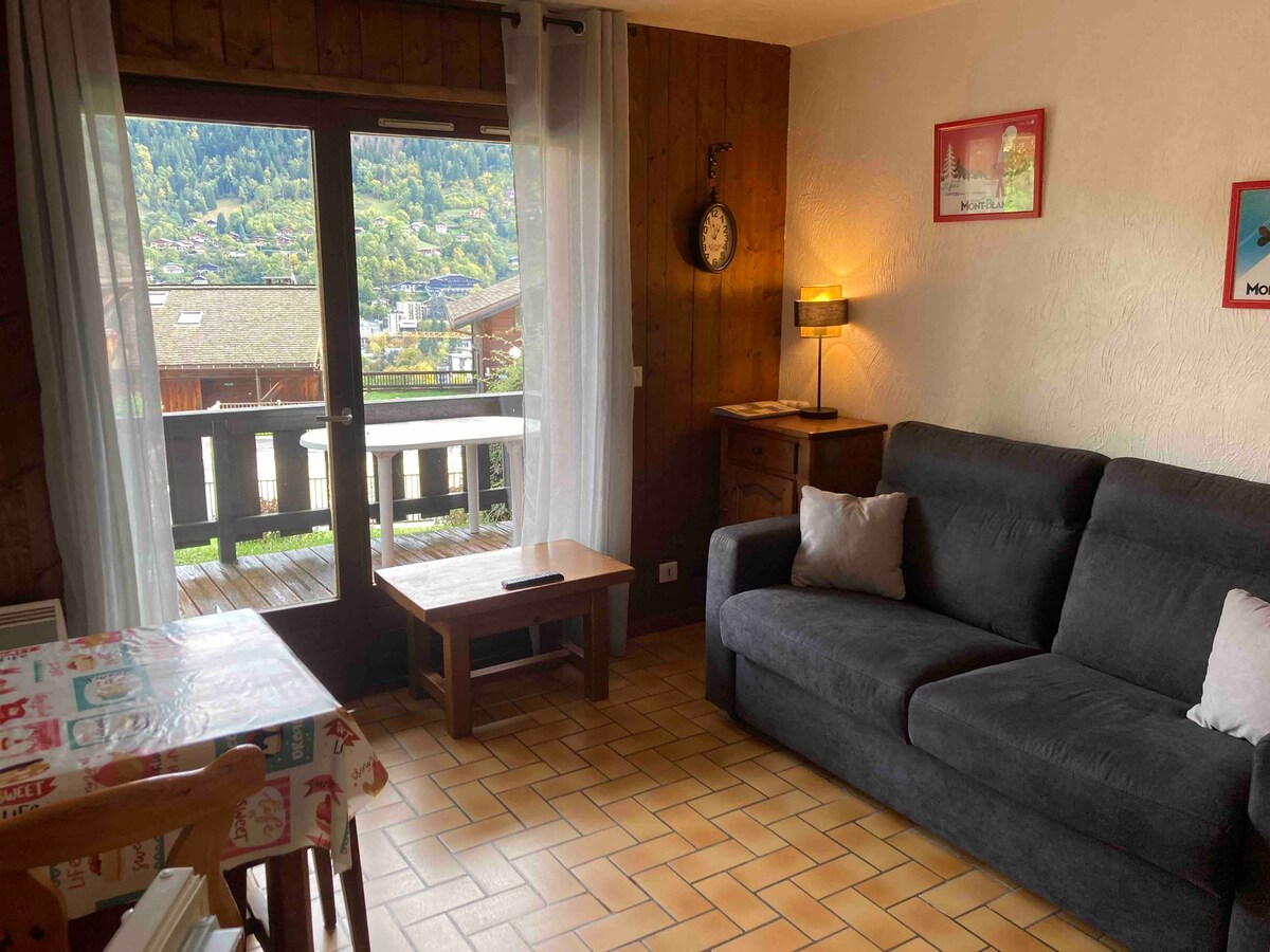 Encantador apartamentito de 24 m² con terraza, muy buenas vistas a la cordillera de los Aravis y los Fiz - Planta baja con jardín, tranquilo, con vistas. Ideal para esquiadores, excursionistas y curistas, parejas con 1 niño o 2 niños pequeños. Ascensor Valléen para bajar a los baños termales. Parada de autobús para esquiar al pie de la residencia . Estaciones de esquí de renombre y de fácil acceso: Evasion Mont-Blanc, Centro termal, restaurantes, tiendas, piscina, cancha de tenis, pista de patinaje; sábanas y limpieza incluidas