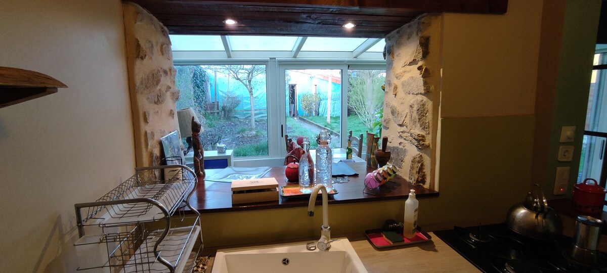 Maison ancienne entièrement rénovée, de caractère et de plein pieds avec véranda et jardin, au calme dans un quartier / village sauvegardé. Départ sentiers natures (forêt et bords de Loire) attenants au logement. Espace naturel de La Roche Ballue, de loisirs et baignade (ancienne carrière aménagée) à 100 m, en contrebas de la maison. Environnement calme et reposant aux portes de Nantes (15 minutes en voiture, 20 minutes en bus) et à 35-40 minutes des plages (Pornic, La Bernerie-en-Retz).