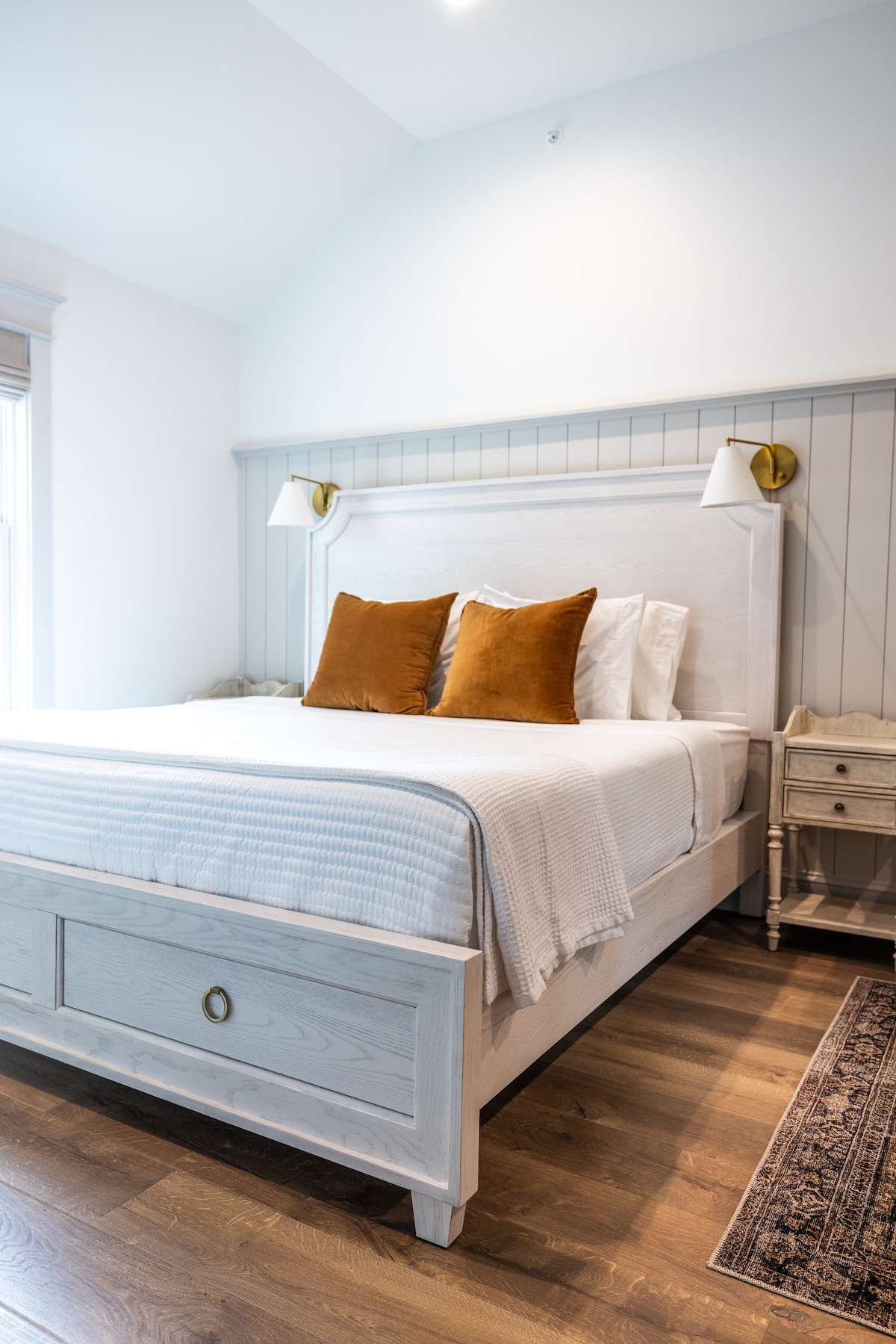 Una mezcla de comodidad y elegancia moderna. Este refugio boutique cuenta con una cama tamaño king adornada con lujosas sábanas, lo que garantiza una noche de sueño reparador. La habitación cuenta con una elegante disposición de asientos, perfecta para descansar y relajarse. El bar bien equipado con servicios de primera calidad y una nevera de vinos proporciona comodidad, invitándote a brindar por momentos especiales. El área del tocador, adornada con acabados de lujo, ofrece un espacio para prepararte para tu día o relajarte por la noche.