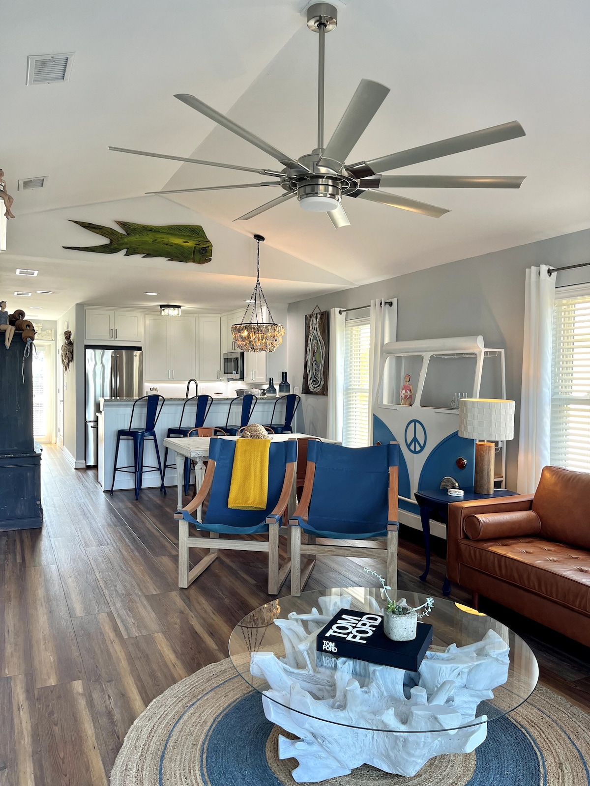 Cozy Cape house perfect for families or friends getting away. Fishcamp is located in the Cape Breeze neighborhood with easily accessible, private beach and bay access. Wake up each morning to a stunning bay sunrise from the Crow's Nest and end your day with a nightcap under the stars on one of the many outdoor deck areas. Conveniently located to the amenities of the Cape and a four minute walk to the beach. Minutes from the state park boat ramp with ample space to park a boat at the house!