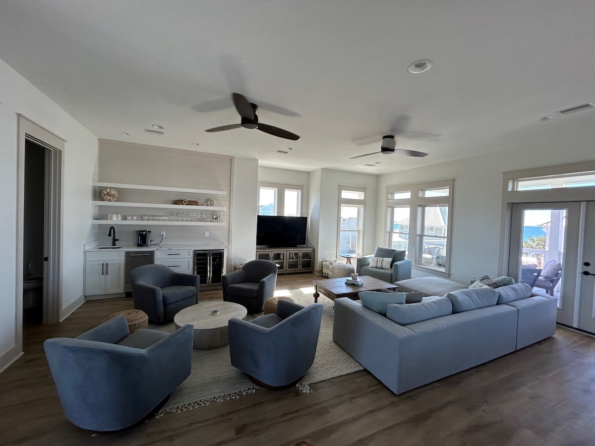 Coastal Gem is a brand new constructed beach home located at Windmark Beach North Community. This home is decorated with coastal décors and provides comfortable cozy beach vibe for your family vacation. Our home has 4 bedrooms and 3 bathrooms including the IN-LAW SUITE. It's attached to the main house with a separate unit offering more privacy included: Master bedroom, full bathroom, living room space, full stocked kitchen, laundry room and private access. Florida Scallop, Music & ART. beach ho