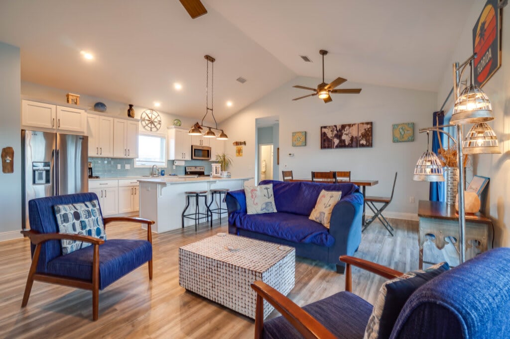 ¡Tu familia estará cerca de todo cuando te hospedes en esta acogedora casa de campo única con una ubicación céntrica! ¡Todo lo que necesitas traer son trajes de baño, sillas de playa y cubos de arena! (¡No te olvides del barco!) A pocos minutos de las playas y a poca distancia a pie del centro de la ciudad. ¡Televisión en todas las habitaciones, cocina totalmente equipada con licuadora y una cafetera Keurig para la mañana siguiente! Porche delantero y trasero abierto y cubierto, complementado con una parrilla para barbacoa en el patio trasero completamente vallado.