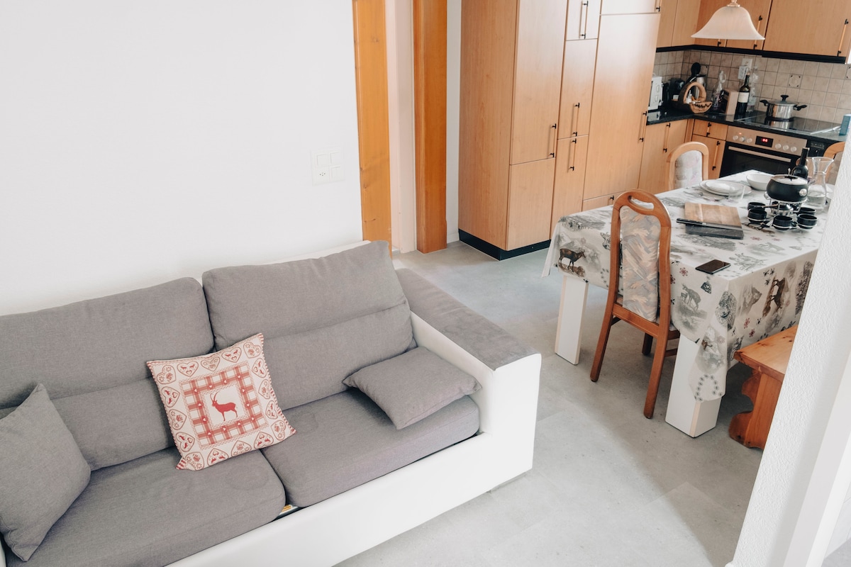 El apartamento se encuentra en una casa antigua con solo otros 3 alojamientos. Tiene una plaza de aparcamiento gratuita y la posibilidad de reservar el baño finlandés y la sauna (consulte las condiciones) Está reformado y conserva un sello típico suizo. Ubicación ideal: A 150 m de la piscina, a 100 m del tele, a 200 m de la Migros y a 50 m de la parada de autobús. La llegada puede ser autónoma, pero estaremos encantados de darle algunas explicaciones y consejos sobre la zona.