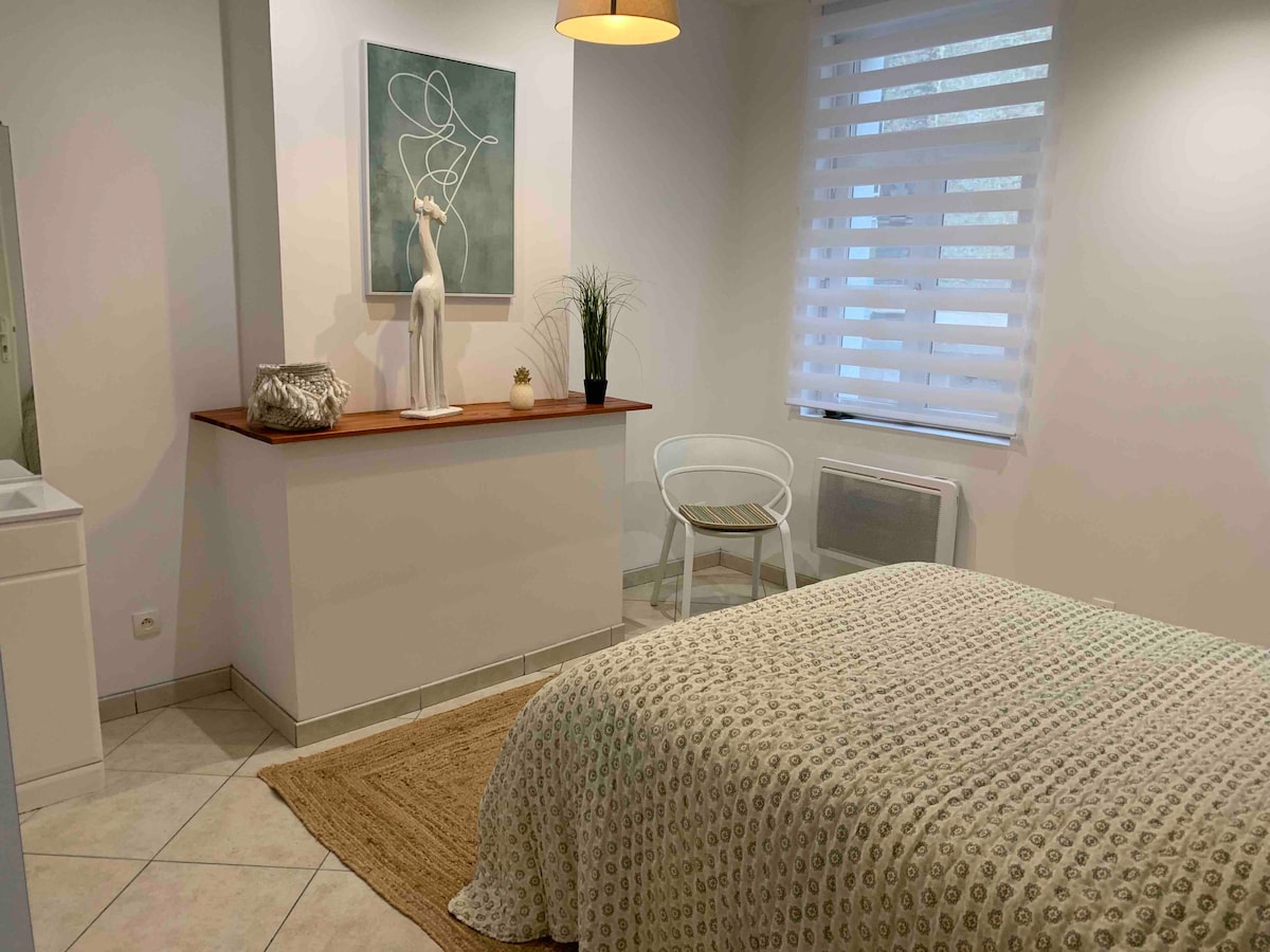 Beau logement décoré avec goût ,très lumineux avec vaisselle, micro-onde,cafetière (café/sucre) Persiennes aux fenêtres. Très facile d’accès. Les draps et serviettes de toilettes sont fournis. A 10 minutes à pied de la gare et du centre ville. Distributeur de billet, pharmacie, débit de tabac/café, restaurant, A16 / A26 à 10 minutes en voiture. bien placé pour destination car ferry. LES FÊTES SONT STRICTEMENT INTERDITES