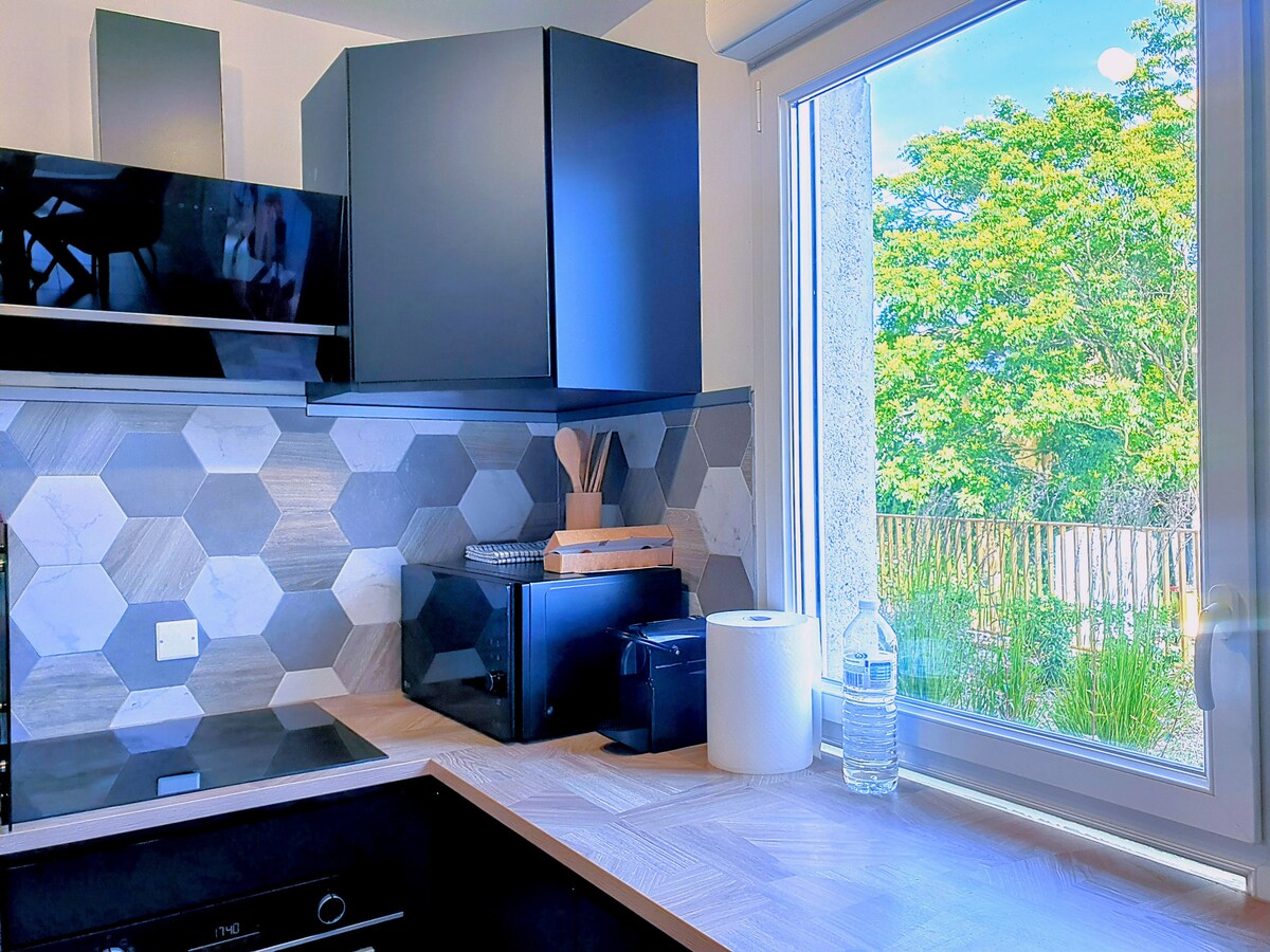 Estudio de 28 m² cerca de la A7/estación, planta baja, jardín + estacionamiento gratuito