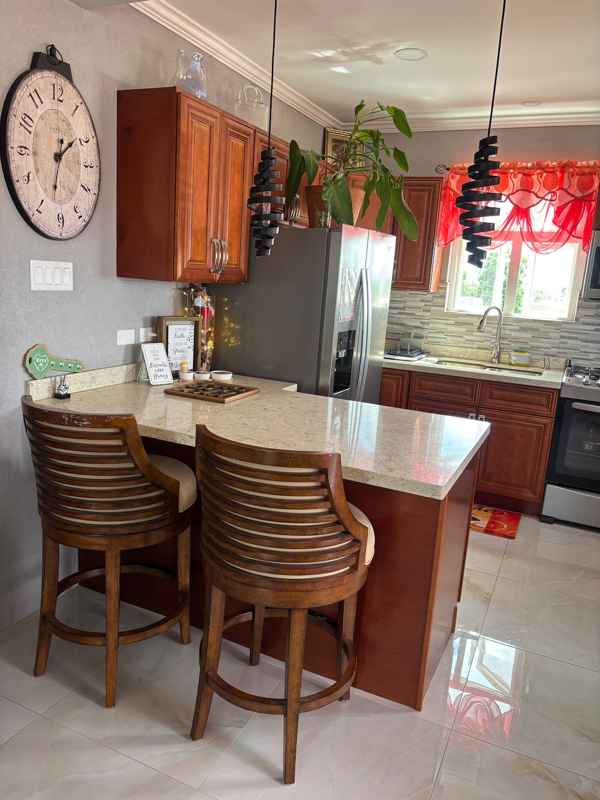 Nuestra casa es un elegante y moderno bungalow con un patio trasero con brisa y aire acondicionado en cada dormitorio. Con una ubicación ideal para aquellos que viajan por negocios, se encuentra en un barrio suburbano seguro, cerca de una concurrida autopista y un centro comercial con supermercados, estaciones de servicio, cafeterías, restaurantes y bancos. Afortunadamente, un corto trayecto en auto te llevará a algunas de las playas más bonitas de la isla, así como al hermoso campo de golf Sandy Lane y al campus de Cave Hill de la Universidad de las Indias Occidentales.
