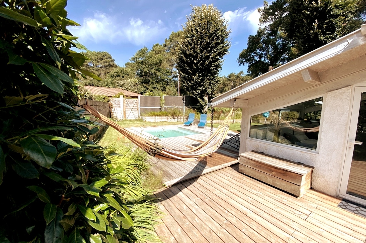 500 m de las playas y el centro de la ciudad, situado entre lago y océano, la villaBrise de pin está enclavado en un hermoso jardín vallado de 2000m2 plantados con pinos y alcornoques. Está decorado con una piscina de sal climatizada de mayo a octubre. Con sus 5 dormitorios, 3 baños y alto nivel de servicios y equipos (casa de piscina, plancha, bolos, bicicletas...), la casa puede acomodar 8 a 10 personas y prometer una estancia en cualquier punto inolvidable cerca de los puntos de surf