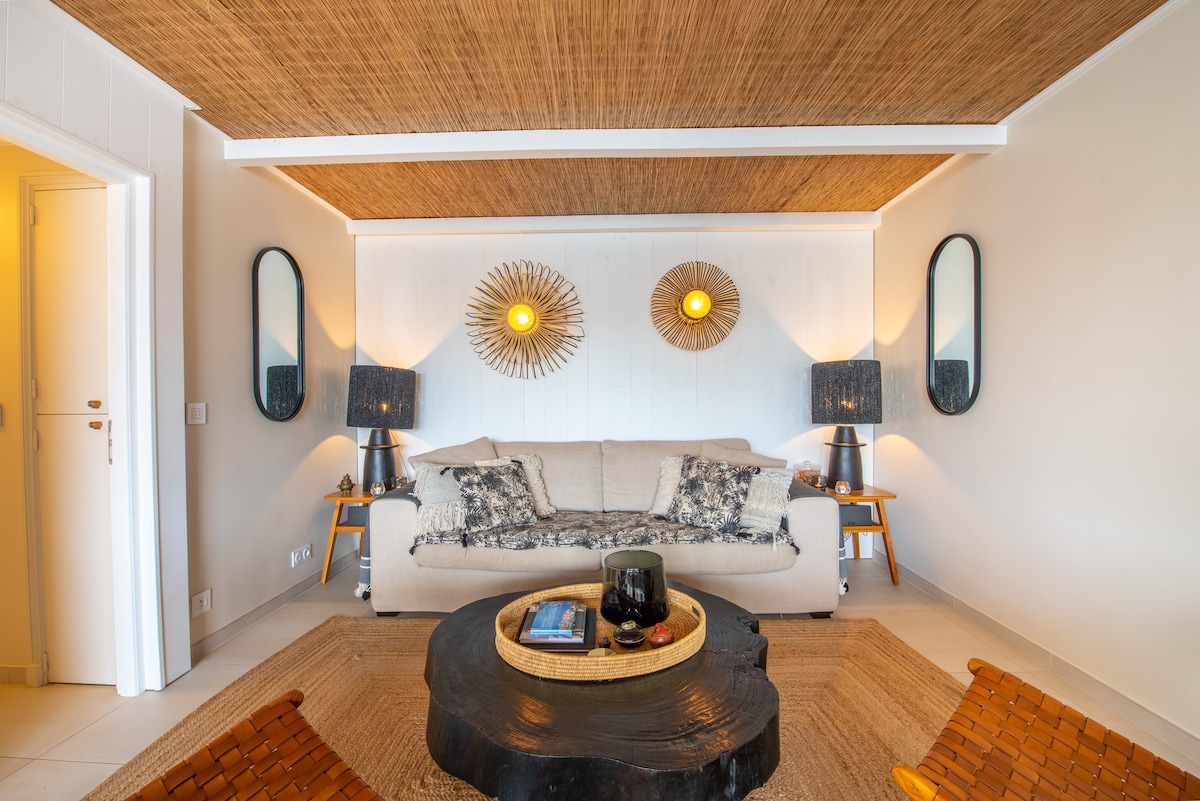 Magnífico apartamento de 2 habitaciones totalmente renovado con las normas y comodidades actuales por la agencia de Diseño y Arquitectura de Interiores - Loft 75 y que cuenta con la clasificación de Alojamiento Amueblado de Turismo de 4 estrellas. ¡Se ha elegido un espíritu «boho» para la decoración refinada para encontrarle en un ambiente exótico garantizado! Vistas a una de las zonas de la Marina. El alojamiento se encuentra en un puerto deportivo privado y seguro con guarda 24/7 para controlar el acceso y su seguridad.