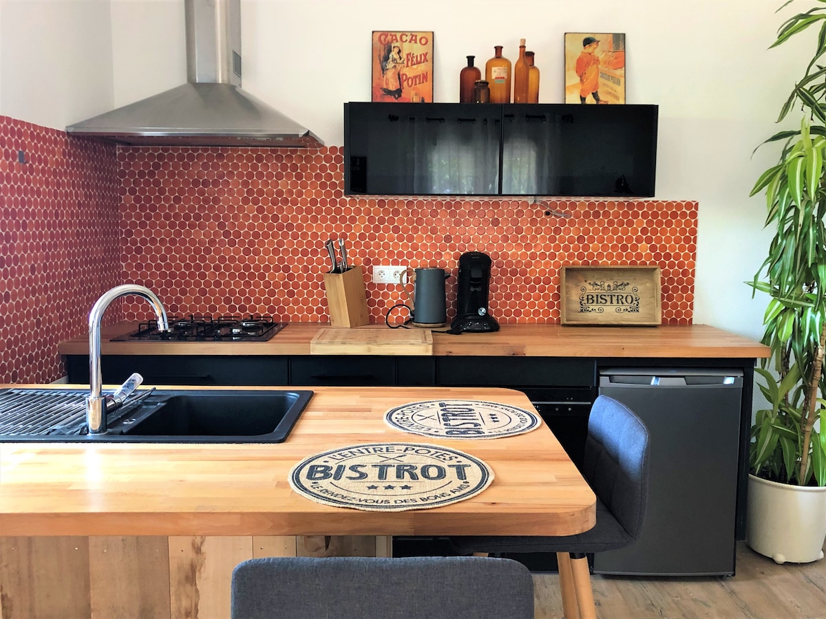 Relájese en este alojamiento tranquilo y elegante completamente renovado en 2022. En un entorno típico del Périgord, venga a relajarse y disfrutar de la tranquilidad de este alojamiento romántico. Sin vecinos, tiene un acceso totalmente independiente, un jacuzzi privado y la casa de huéspedes que le ofrecerá todas las comodidades durante su estancia. Podrá disfrutar de la terraza privada mientras se deja mecer por el canto de los pájaros.