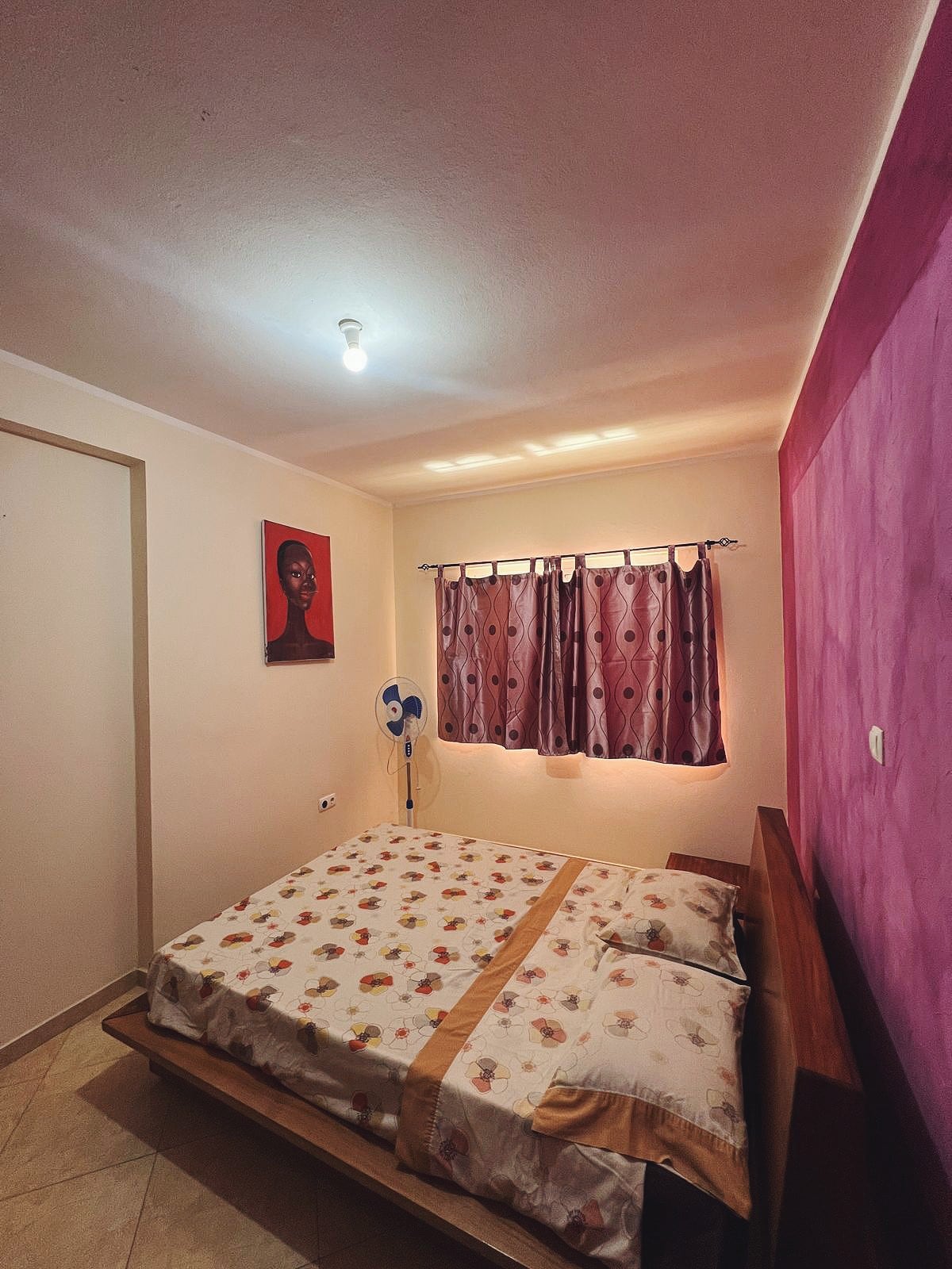 Amplio apartamento de 2 dormitorios con azotea privada, en el 3er piso en una calle tranquila y típica en el centro de Santa María. Situado a 1 minuto a pie de la calle peatonal y a 4 minutos de la playa, disfrutará de una posición ideal para su estancia. La azotea ofrece vistas panorámicas del pueblo de Santa María, la isla de Sal y espléndidas puestas de sol. Tiendas y restaurantes a pie del edificio. El apartamento es de paso y se beneficia de ventilación natural.