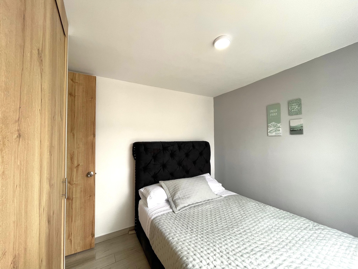 A 20 mts del parque, apartamento de un sólo espacios equipado para 2 a 5 personas CheckIn 3 pm - CheckOut 12 md Llegada Autónoma con Cerradura Inteligente •2 Camas dobles •Sala con Sofacama •1 Baño completo con agua caliente •Secador de Cabello •Tv Smart con cable y cuenta Netflix •Ventilador •Closet •Comedor •Cocina equipada •Cafetera •Cafe, Agua y Maní. * NO INCLUYE DESAYUNO * NO CONTAMOS CON PARQUEADERO