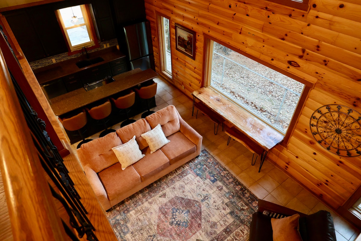 The Cedar Springs Cabin, located on the outskirts of beautiful Hot Springs, Arkansas, is a unique, one-of-a-kind experience. This beautifully crafted structure is rustic, yet modern. Enjoy gorgeous views from the top balcony or relax downstairs on the custom outdoor swinging bed. The property is perfect for a romantic couples getaway but also incredibly family-friendly with the outdoor game area and "buried bus" theater room!