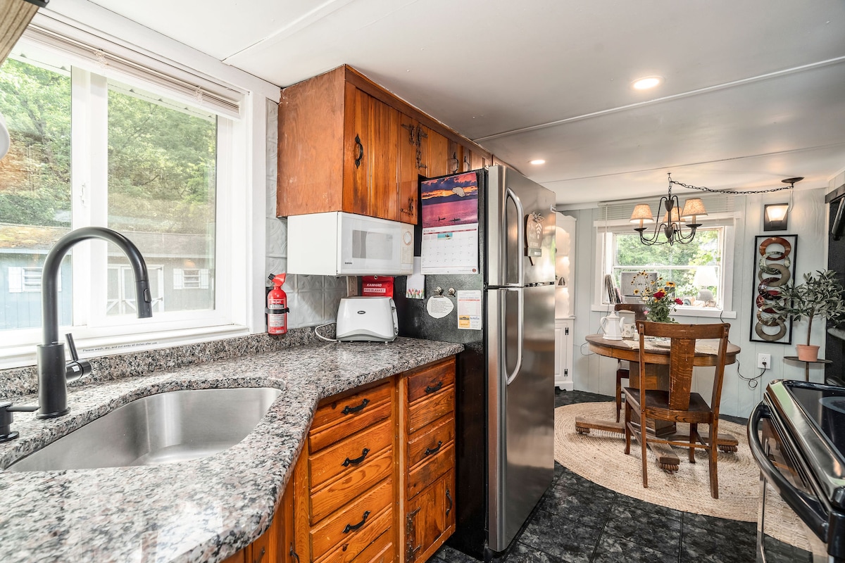 Ubicado en el corazón de Frenchtown Nueva Jersey, encontrarás encanto escondido en los exuberantes jardines de River Witch Cottage. • Recupérate en una lujosa cama tamaño queen. • Prepara una comida sencilla en la cocina totalmente equipada • Nutrete en el encanto de un comedor íntimo • Reclínate con comodidad junto a una hermosa chimenea de gas • Rejuvenece en los chorros de la bañera de hidromasaje, sumergiéndote bajo el resplandor natural de los tragaluces • Tómate un café por la mañana o un vino por la noche en el tranquilo entorno del patio privado al aire libre.