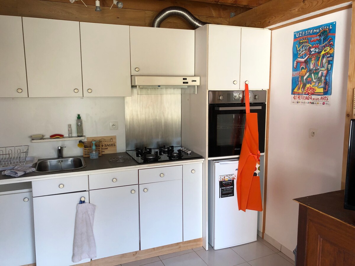 ✨Alojamiento luminoso para 4 personas con terraza.✨ Ideal para parejas, familias o viajeros de negocios, tranquilo entre Burdeos, Arcachon y Biscarrosse. • Habitación con cama doble (es posible añadir una cuna bajo petición). • Sala de estar con TV, sofá cama y mesa • Cuarto de baño con inodoro y ducha • Cocina equipada (lavavajillas, microondas, heladera, placa de 4 fuegos, Senseo y hervidor de agua) • Terraza agradable con mesa y sillas.