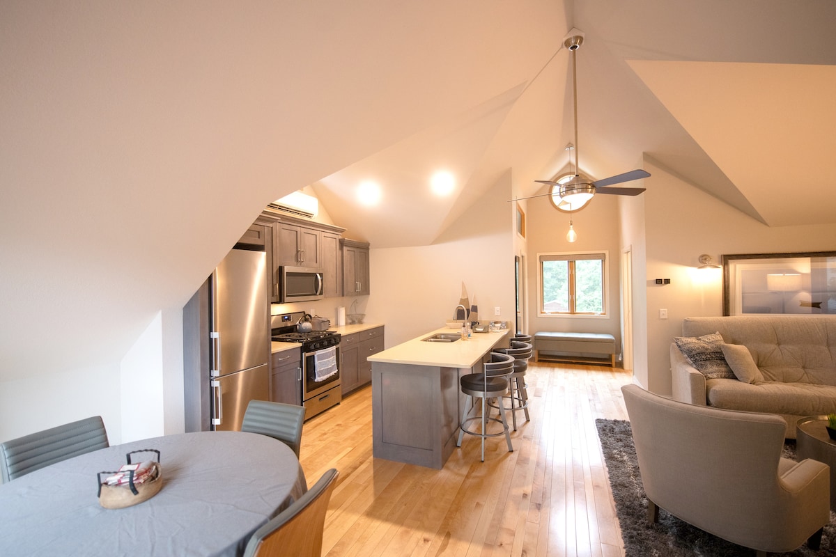 Tu punto de partida para todas las cosas de Apostle Islands National Lakeshore. Descansa y relájate, a una cuadra de la sauna pública y la piscina, donde te despertarás con amaneceres sobre el lago Superior y terminarás tu día en la terraza con una copa de vino o un buen libro. El dormitorio y la sala tienen una iluminación natural increíble. El café local y una cocina completa, así como lavandería, estacionamiento gratuito, Roku TV y una ducha de azulejos personalizada ofrecen todas las comodidades de un hogar. ¡La escapada romántica perfecta o un retiro para uno!