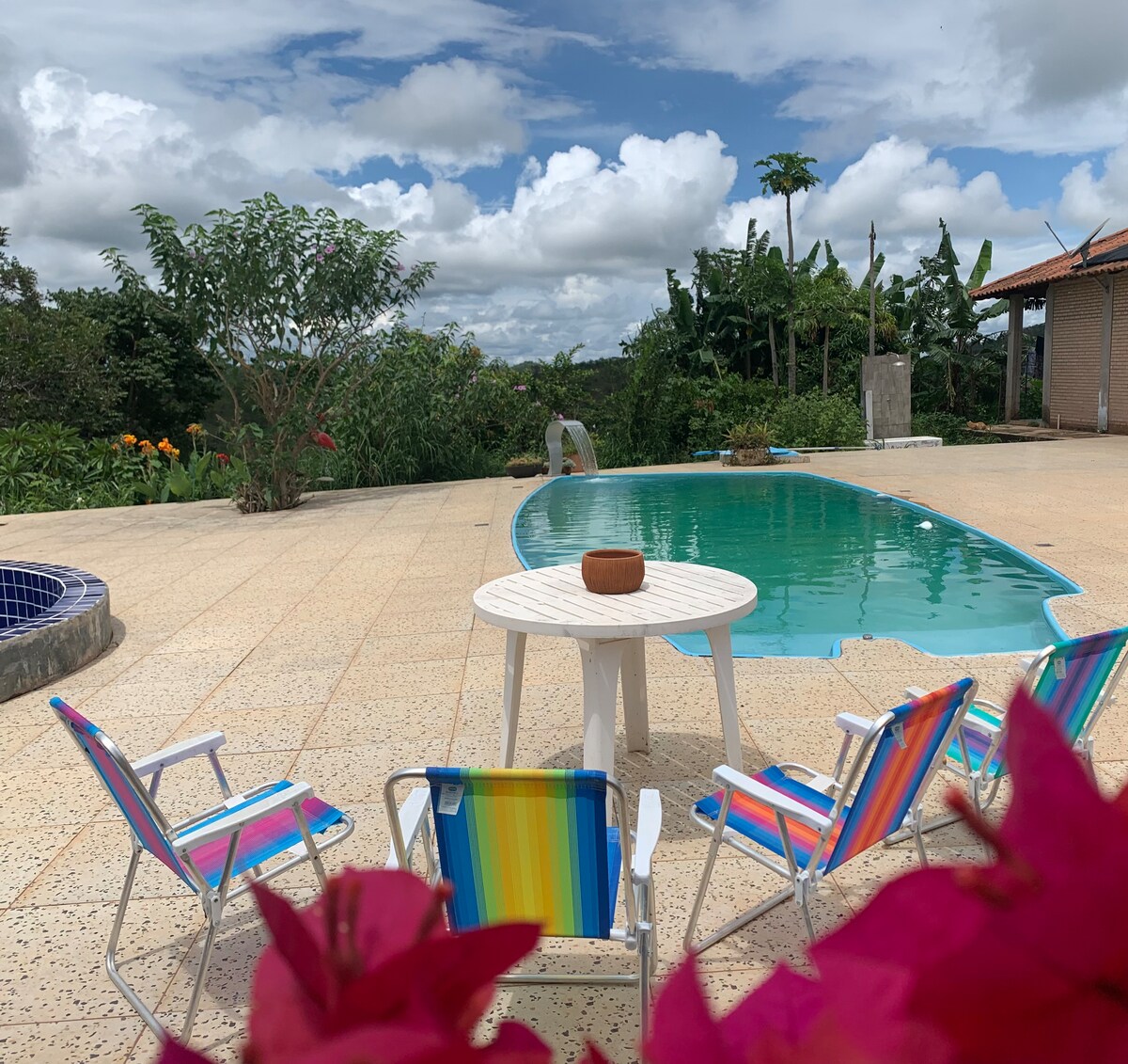 Localizado dentro da cidade, o Rancho Palmeira é a escolha perfeita para quem busca conforto, lazer e praticidade. Aqui você encontra uma piscina ao ar livre com churrasqueira, jardim amplo e estacionamento privativo gratuito – tudo em um espaço exclusivo só para você. 🏡 A casa de temporada dispõe de: 1 quarto aconchegante 1 banheiro completo Roupa de cama e toalhas inclusas Sala com TV de tela plana Cozinha completa e equipada Espaço para refeições Varanda com vista para a piscina e jardim
