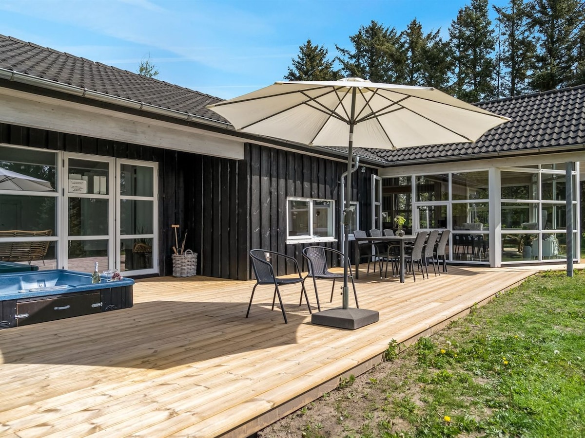 Brand new remodeled townhouse in Blokhus, forest right by the house and 7 min walking to Blokhus town and restaurants. 7 min to the beach. This beautiful residence has 3 rooms, 1,5 bathroom, 3 TVs, children's room with books and board games, 3 terraces, private jacuzzi, sand area with firepit, shared gameroom with fusball, and table tennis, tennis field, and heated indoor pool, 10 min drive to Fårup Sommerland, Europes best amusement park. Perfect for family vacations.