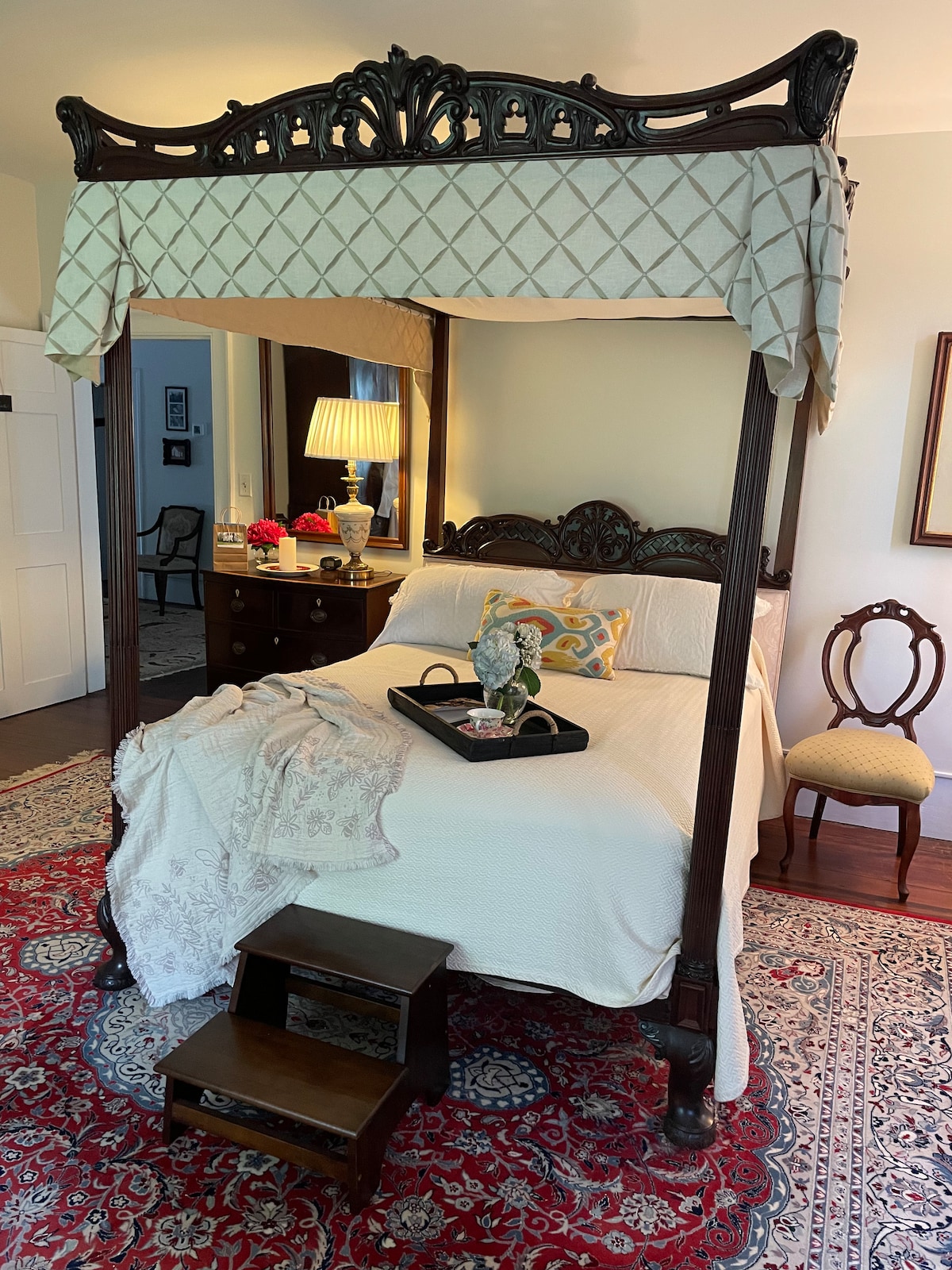 Ven y explora a tu científico loco en el cuarto de Jekyll y Hyde. Te esperan una colección seleccionada de instrumentos médicos y mensajes de texto de la época victoriana. Disfruta de una lujosa cama doble con tu propio baño vintage único (ducha). Un rincón para comer es un espacio encantador para nuestro desayuno de servicio a la habitación y también hay muchas cosas por hacer. Explora la casa, socializa o explora el encantador distrito histórico de Newberry.