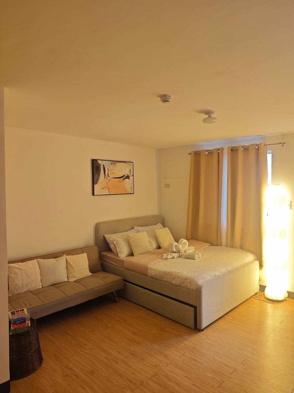Machaseh Suite es un espacio sereno y cuidadosamente diseñado para los huéspedes que valoran la comodidad y la calma. Este moderno estudio cuenta con aire acondicionado, WiFi rápido, Netflix y una cocina americana totalmente equipada para estancias sin esfuerzo. Disfruta de acceso GRATUITO a piscinas y servicios compartidos, todo dentro de una comunidad segura. Convenientemente ubicado cerca de: • Aeropuerto Internacional de Davao • SM Lanang / Gaisano / Abreeza • Azuela Cove • Puregold / Watsons/7-11 /Mercury Drugs • Dusit Thani / Frente al agua • Sasa Wharf • Centros de negocios