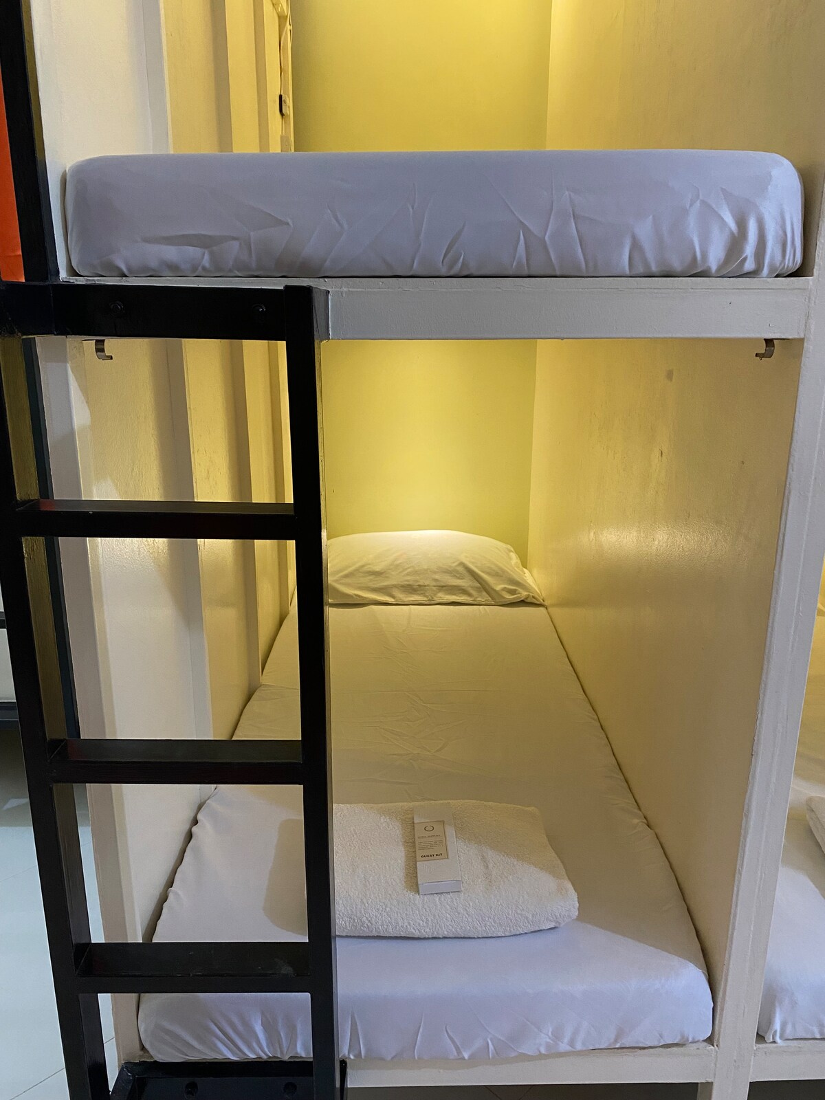 Experimenta la comodidad, la comunidad y la conveniencia en nuestro dormitorio mixto Bunk & Chill, perfecto para viajeros solos, mochileros y grupos que buscan una estancia asequible pero acogedora en la ciudad de Tacloban. Nuestro dormitorio cuenta con cómodas literas con sábanas limpias, cortinas de privacidad individuales, casilleros personales y amplia ventilación para una noche de sueño reparador. Los huéspedes comparten el acceso a baños comunes limpios y bien cuidados, cuidadosamente equipados con duchas frías y calientes y artículos de tocador básicos.