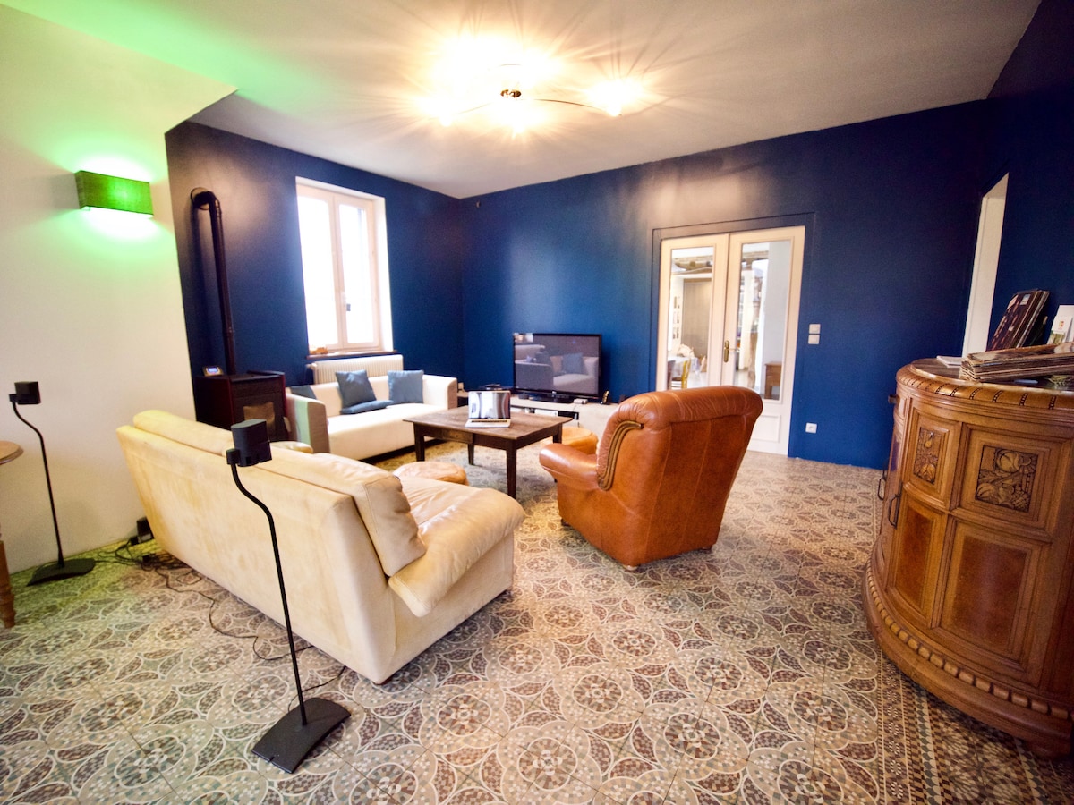 Casa de carácter, luminosa, con amplio espacio habitable. En medio de la naturaleza, muy tranquilo. Rutas a pie o en bicicleta (bosque de St Gobain 2mn). 20 min Soissons (N2) o Laon y sitios históricos (Coucy Le Chateau, Chemin des Dames, Cueva del Dragón, Catedral Gótica). Estación de tren a 6 minutos (París a 1h20). 15 min Parque Central. 55 minutos de Reims, capital de Champagne.