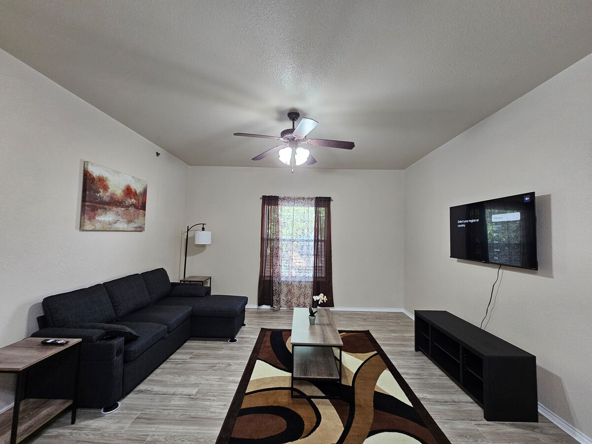 Welcome Home! Nestled in the corner of a quiet end-unit community. Cheaper than a hotel. Brand new everything to feel like home! 2 Memory foam beds, 1 King and 1 Queen. The sofa has memory foam Simmons queen mattress, and Comfy mypillows. 1 Full bathroom and 1 half bath with a full kitchen, washer, and dryer, fast High-Speed WiFI. Accommodate 6-8. Close to shopping areas, Medical Center, Seaworld, Fiesta, Six Flags, downtown(Riverwalk), and Lackland Airforce Base. Great for military graduations!