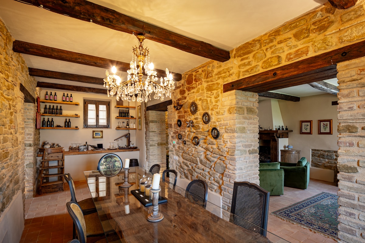 Encantadora y exclusiva finca de 10 acres en una colina, atardeceres memorables; gran piscina enmarcada por lavanda y romero, abierta todo el año. Nuevo aire acondicionado, internet Starlink. Muy privado y tranquilo 2 pisos, 4 dormitorios, 4 baños, bañera de hidromasaje, TV inteligente de 55 pulgadas, cocina bien equipada, porche y pérgola para cenar al aire libre, barbacoa Weber, horno de pizza, olivar, chimenea; A 20 minutos de Orvieto,Todi,Amelia; a 10 minutos en auto de la estación de tren a Roma/Florencia, a 5 minutos en auto de las tiendas de la ciudad. Cuidador de jardines/piscina