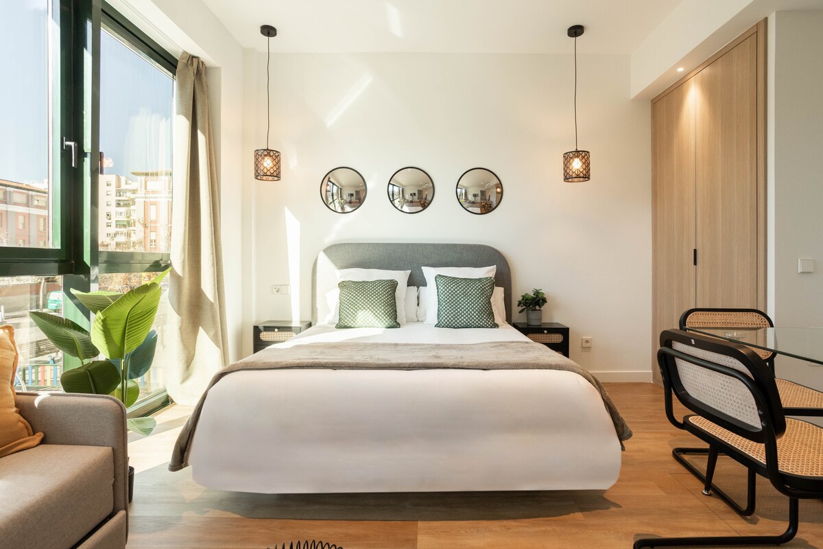 Moderno y acogedor con terraza. A 5 minutos del parque del Retiro