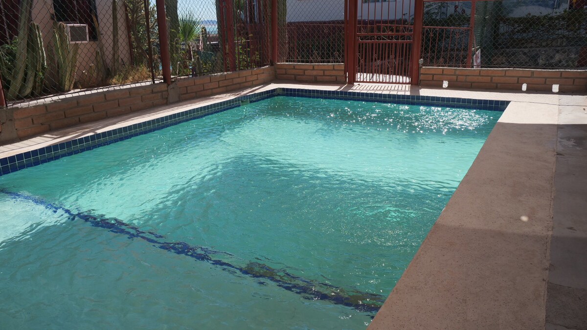 Welcome to our quiet, centrally-located, and spacious San Felipe Condominium! We offer a private floor that sleeps up to 10 people in our complex that includes a master bedroom attached private bath, 2nd bedroom with a bathroom across the hallway 3rd bedroom with bathroom 4th floor with view, full kitchen. Our condo offers private parking, located in a peaceful great neighborhood that is close to shopping and dinning areas, is a 5 minute drive to Downtown and the cities beautiful blue beaches.