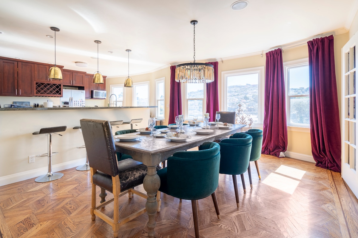 Stride across upper level with 27 feet of windows unobstructed views on heated floors and sit by a fireplace with a sailing sloop model on the mantelpiece. A mid-century-modern vibe is contrasted by vibrant art & images of George Washington and Nefertiti. Peer through wall of windows with a telescope at a scenic neighborhood or gaze as far you can see the southern landscape. Private entrance. Separate Host's apartment on ground floor accessed via garage. Base price 4 guests, 5 & 6 extra charge