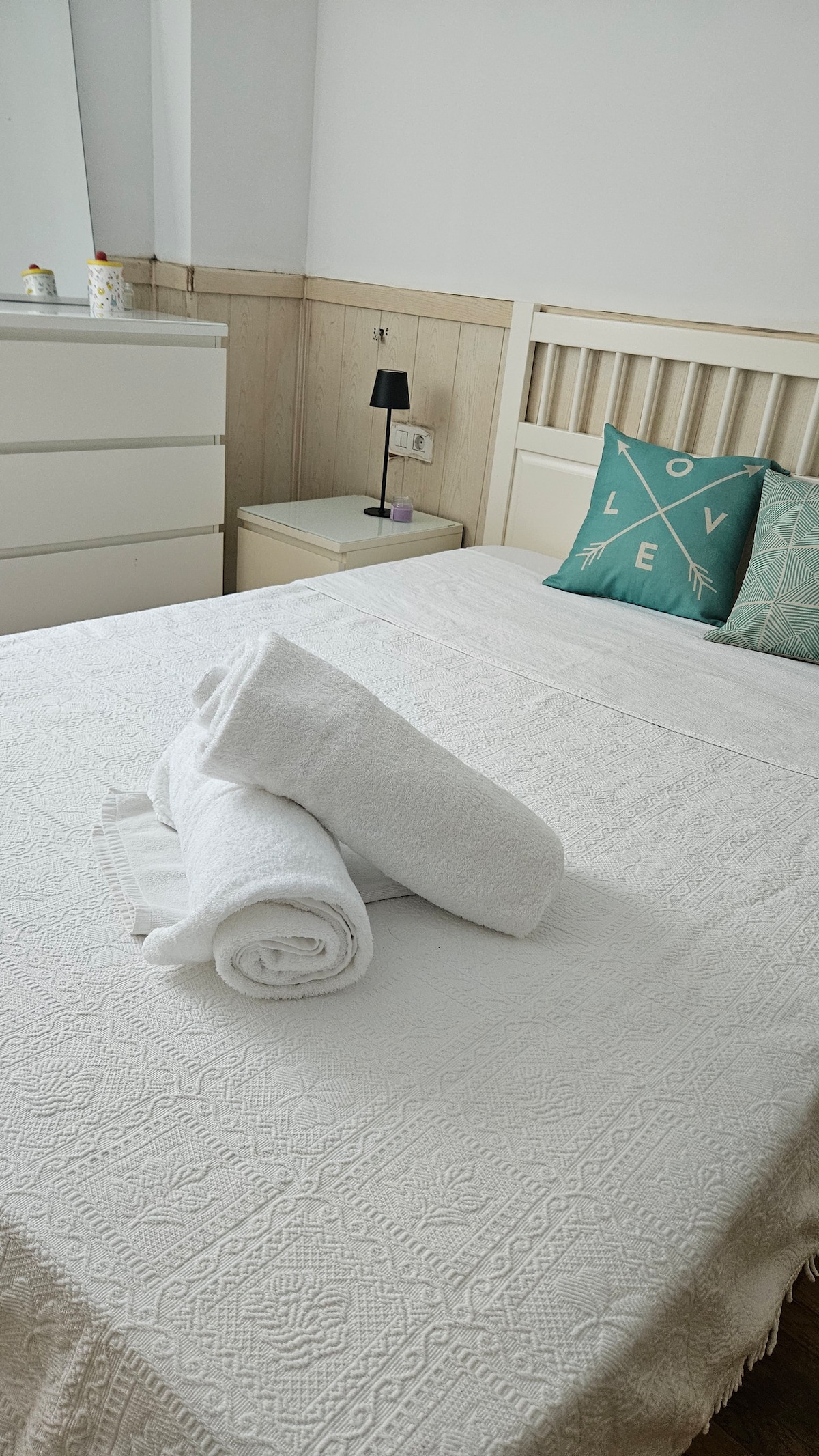 Acogedor apartamento para dos personas. Habitación con cama de 1:50 y amplio vestidor. Sala de estar con zona de comedor, sofá cama y escritorio y SmartTV grande. Baño completo Cocina independiente Entrada independiente por una zona peatonal de árboles. Parking gratuito en calle, Playas a 8 minutos de casa en coche. Con todos los servicios cerca, cinco minutos andando. cafeterías, supermercados... Es zona residencial de chalets sin ruidos. Estarás en un entorno verde y arboles