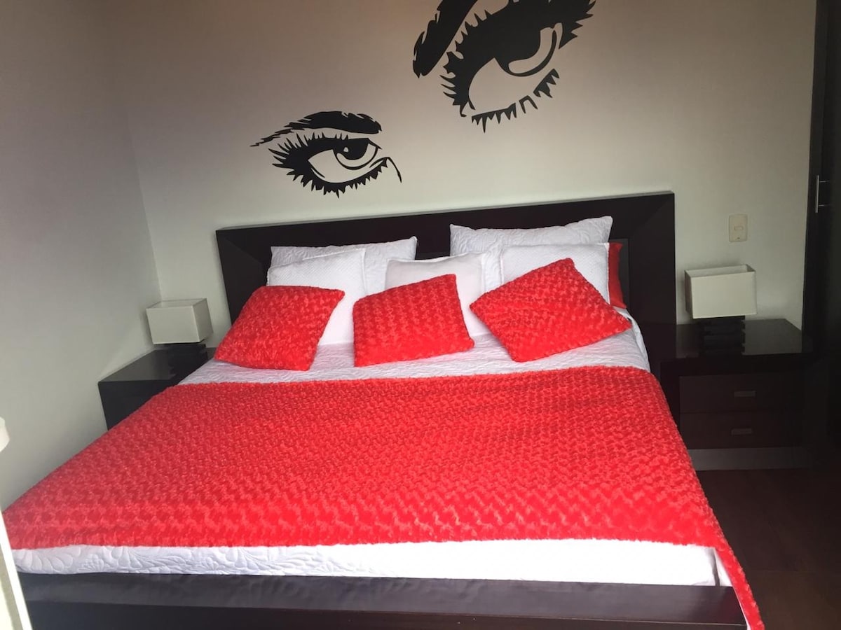 Hermoso apartamento en el municipio de Bello - Antioquia. El apartamento cuenta con tres habitaciones; alcoba principal con cama doble, Smartv, baño privado y vestier; la segunda habitación con cama sencilla y mesa de noche, y la tercera con cama y closet. Además se dispone de baño social, sala, comedor, cocina dotada, lavadora, calentador de agua, acceso a internet de 180 MB y 2 balcones.
