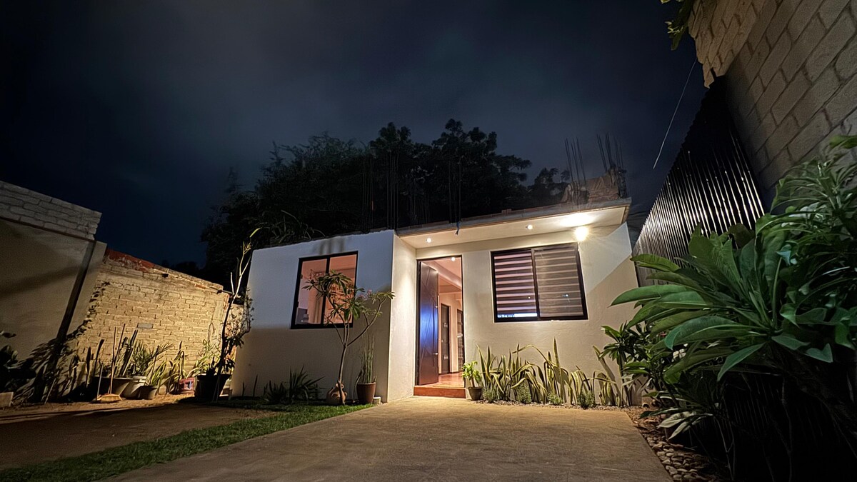 Disfruta este Loft privado con un hermoso diseño que inspira el arte, con cocina equipada, un comedor, una acogedora sala, baño amplio y elegante, con servicios de wifi, agua caliente, un patio para estacionamiento y un pequeño jardín. Este espacio está ubicado en el municipio de San Agustín de las Juntas un bello pueblo lleno de tradiciones y costumbres, a 2 min en vehículo y aproximadamente 8 min a pie del Aeropuerto Internacional de Oaxaca, y a 20 minutos en vehículo de la Ciudad de Oaxaca.