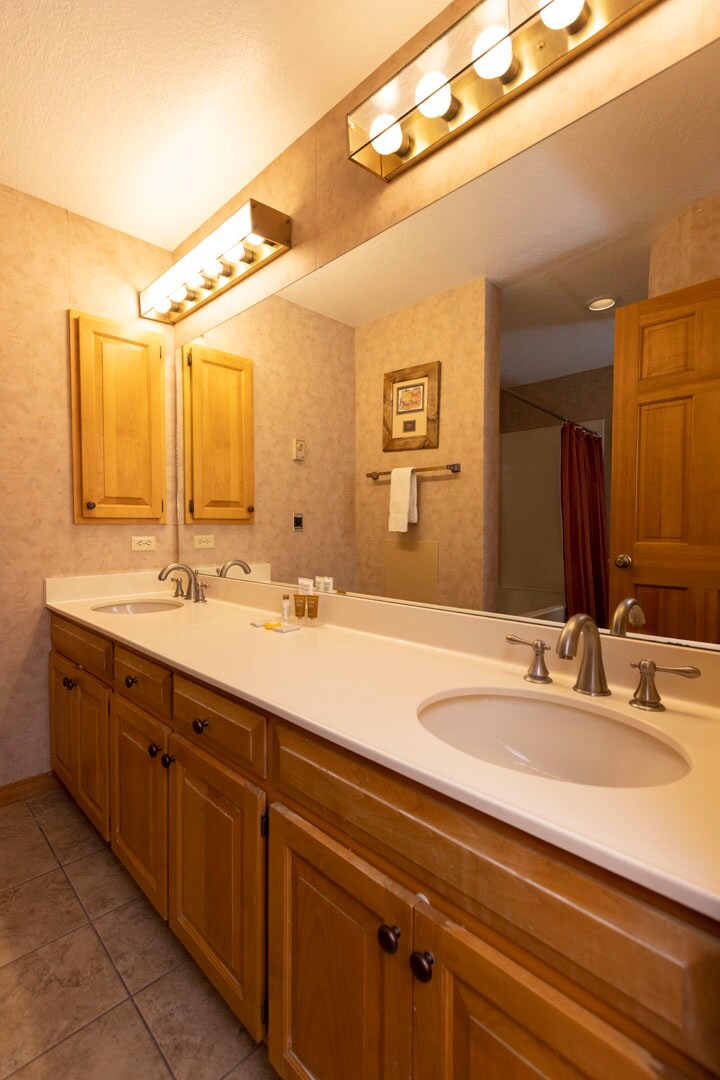 Great for small families or 2 couples this 1 bedroom + loft / 2 bathroom suite. This suite offers a king bed in the master bedroom and an upstairs semi open loft that has 2 twin beds or 1 queen bed (queen must be requested at time of booking) with its own private bathroom. This suite offers a full kitchen, gas fireplace, cozy living room and a private balcony.