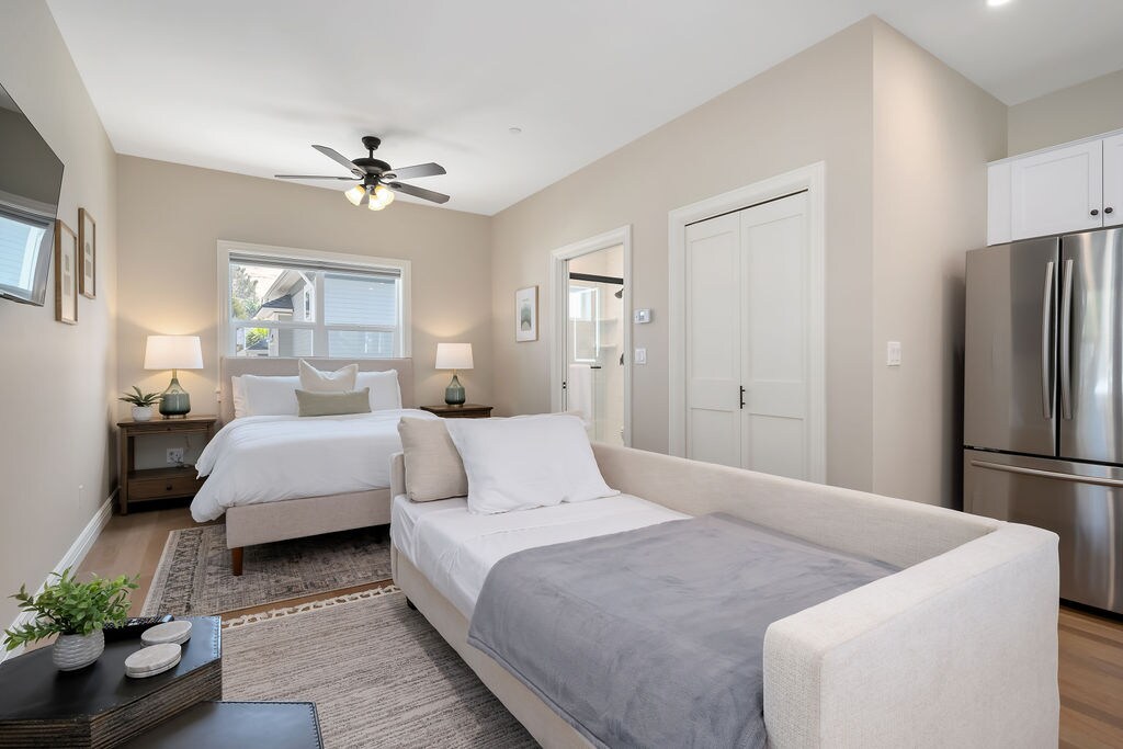 Disfruta de este espacio limpio de 420 pies cuadrados en una ubicación estupenda de SLO. A poca distancia de la ciudad, restaurantes, carriles bici y senderismo. Entrada privada. Estilo de concepto abierto, cama tamaño queen y opción de sofá doble. Vestidor grande con ropa de cama y toallas adicionales. Cocina totalmente equipada: nevera, horno, microondas, lavavajillas, ósmosis inversa para agua potable y triturador de basura. Baño bellamente hecho con ducha grande y tocador.