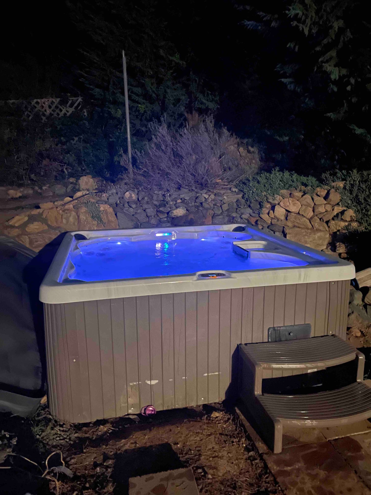 Perfecta para una sola pareja, esta casa de campo privada tiene 800 pies cuadrados, biblioteca/sala de estar con TV de transmisión Samsung y wifi. Otras características incluyen nevera, microondas, horno tostador, cafetera, barbacoa y múltiples cubiertas con vistas. Hay muchos libros para leer y piscina. El dormitorio y el baño grande tienen todas las comodidades del hogar, incluyendo calefacción/aire acondicionado. Esta maravillosa ubicación (elevación 2000) tiene vistas al mar/montaña. Por favor, pregunta sobre las mascotas. No hay servicio de comidas, pero hay un restaurante cerca.