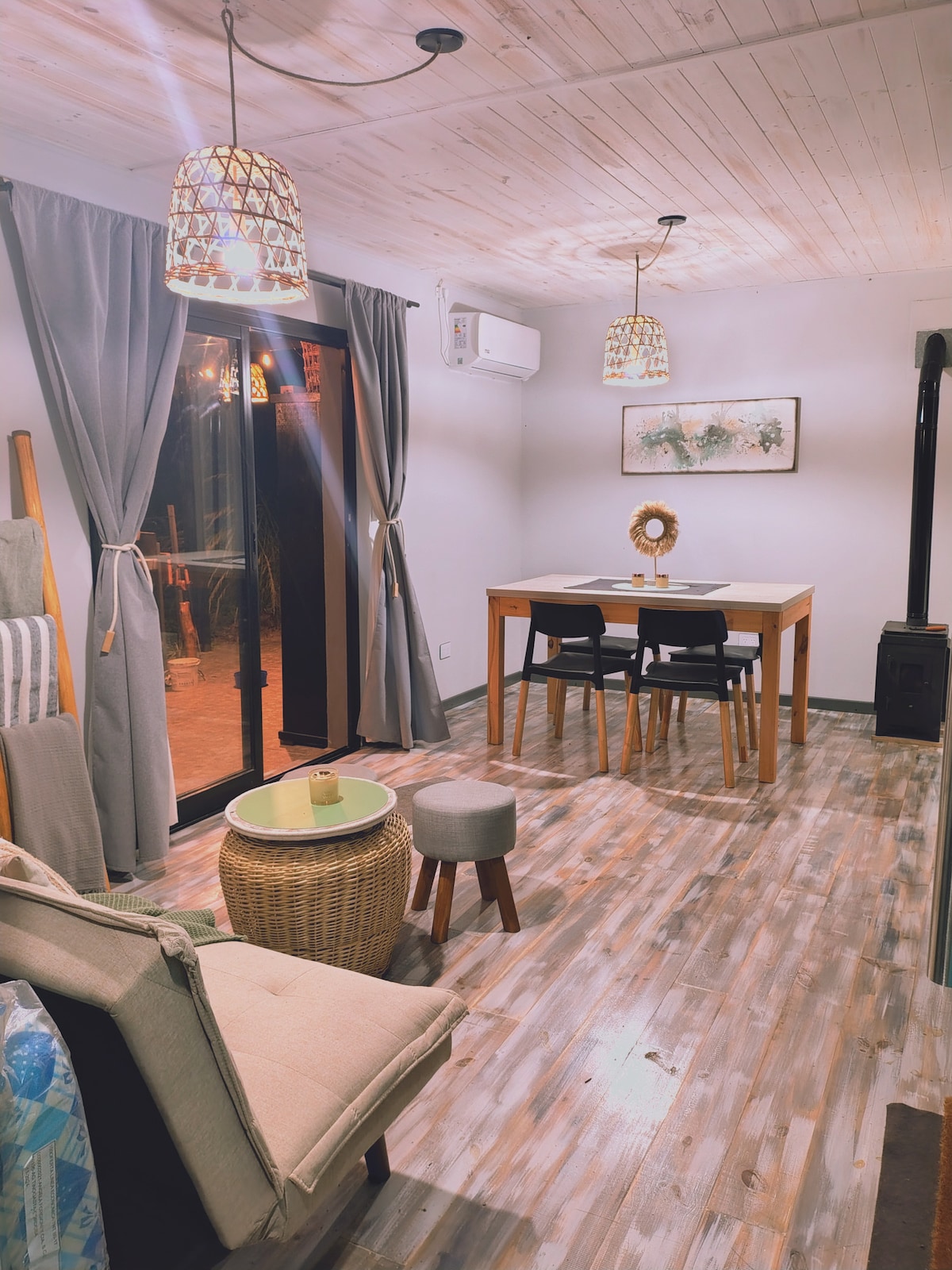 Casa luminosa con arte en la zona deTuneles Vegetales con construcción antisismica arboleda estilo bosque con jardin Buen internet ideal nomades digitales. Disfrutar el silencio de noches con nitidos cielos estrellados para descansar y relajarse . Un dormitorio con cama doble .un estar con cama marinera , una cocina completa comedor, baño A 40 metros hay una acequia de rio , asador con mesa bancos rústicos . Hasta 4 habitantes-