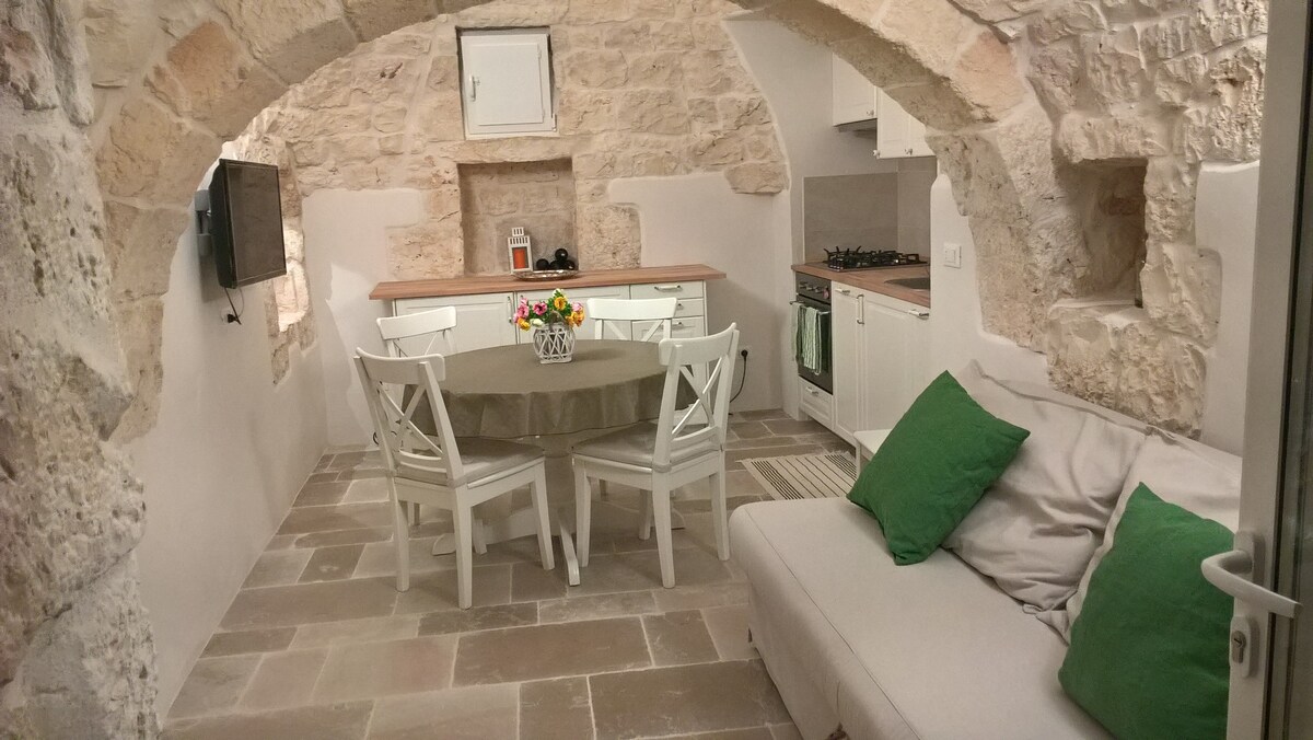 CIS: BR07401291000000188 CIF: IT074012B400033730 Vive la mágica sensación de encontrarte entre el pasado y el presente: ¡es una casa histórica! Los suelos de época y las paredes de piedra son el telón de fondo de un entorno amueblado con objetos de diseño, cerámicas antiguas y muebles locales. La gran terraza privada, con solárium y ducha caliente, te entusiasmará: podrás relajarte con una copa de vino al atardecer, disfrutar del sol en cómodas tumbonas o preparar una cena en un ambiente mágico de Apulia.