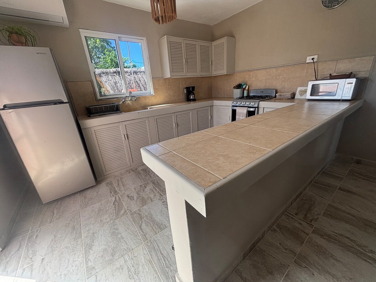 Perfect for beach and nature lovers looking looking for a quiet getaway! One of the best private locations on the island, with direct access to a sandy beach where you can enjoy water sports or simply relax on the shore. Just a 5 minute drive to Cozumel’s downtown area. This newly remodeled suite has everything you need for a comfortable stay including: an open outdoor patio, a large studio, private bathroom, air conditioning, smart TV, Wi-Fi and a kitchenette stocked with new appliances.