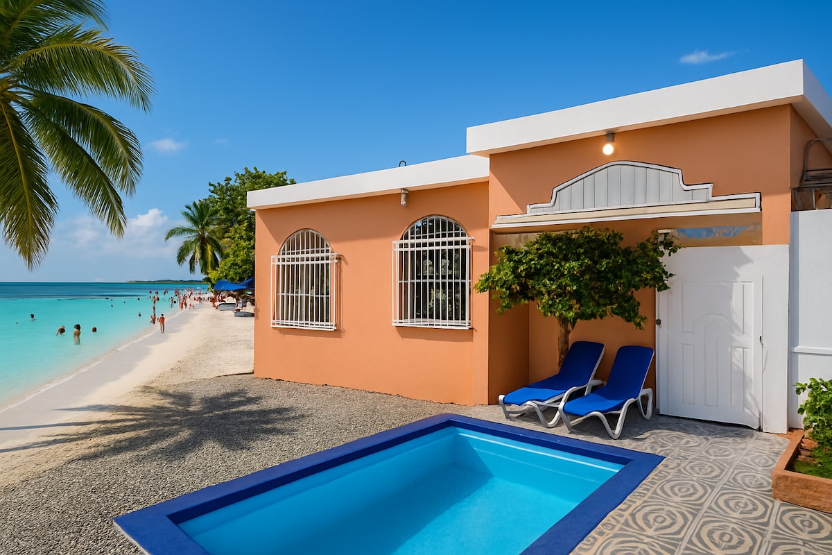 Disfruta de la sencillez de este alojamiento tranquilo y céntrico. 1. Frente al mar, a solo pasos de la arena. 2. Piscina, playa y relax en un mismo lugar. 3. Despierta con la brisa y el sonido de las olas. 4. Cerca de bares, restaurantes y vida nocturna. 5. Tu escape perfecto en el Caribe te espera.