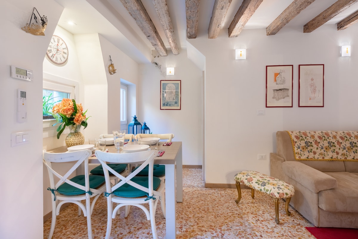Un pequeño apartamento cuidado en cada detalle ideal para dos personas que se encuentra a 10 minutos de la Plaza de San Marcos. La vista privada al canal por un lado y el patio interior por el otro lo hacen único en su género. La casa está equipada con aire acondicionado y wifi ilimitado y en los alrededores hay numerosas tiendas, bares y restaurantes típicos. De acuerdo con las disposiciones para prevenir el contagio de la COVID-19, después de cada estancia se realiza una desinfección con tratamiento de ozono.