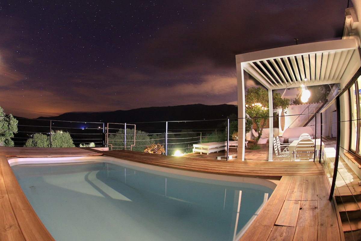 Casita privada enclavada a los pies de Sierra Crestellina en Casares, Andalucía. Casa de huéspedes anexa bien equipada y rodeada de hermosos jardines con impresionantes vistas a la montaña y una gran piscina. La casa de huéspedes tiene su propia entrada, terrazas al aire libre y cenador. El entorno tranquilo ofrece privacidad y es perfecto para parejas y amantes de la naturaleza. Los huéspedes tienen fácil acceso a la piscina, la casa de la piscina, los jardines y los campos. Seréis los únicos huéspedes.