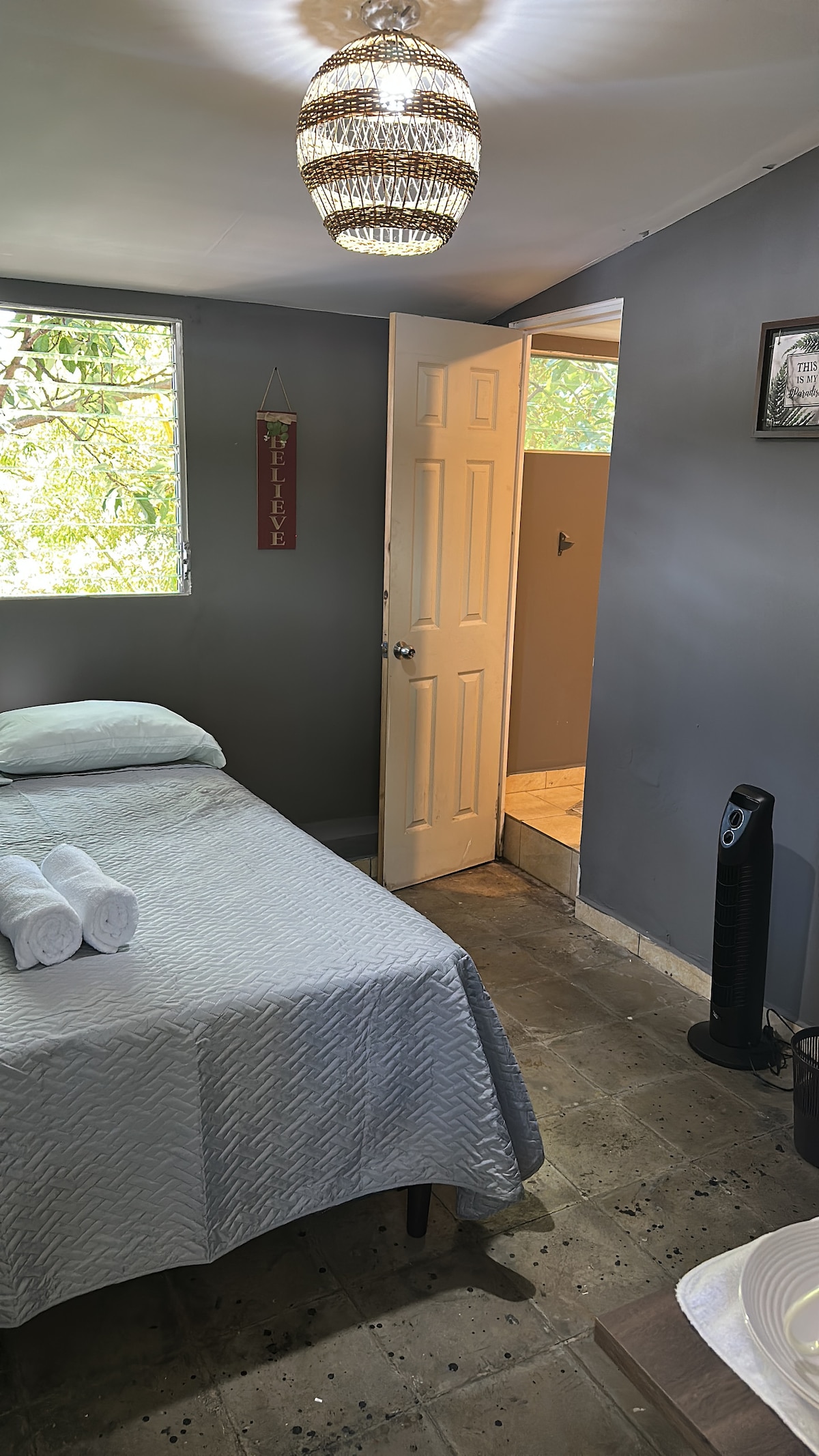 Disfruta de este alojamiento tranquilo y céntrico. Ideal para una persona o pareja. La habitación se encuentra dentro de una casa familiar con acceso independiente con derecho a parqueo en la cochera. Cuenta con baño propio con agua caliente, con espacio de trabajo, Wifi, Tv con FireStick (Netflix, HBO, Disney, etc), cama full, ventilador de techo, mini cocineta (cafetera, micro ondas, etc.) y acceso a lavadora y secadora (área común). Ubicado en Col. Campestre, zona Escalón, céntrico y seguro.