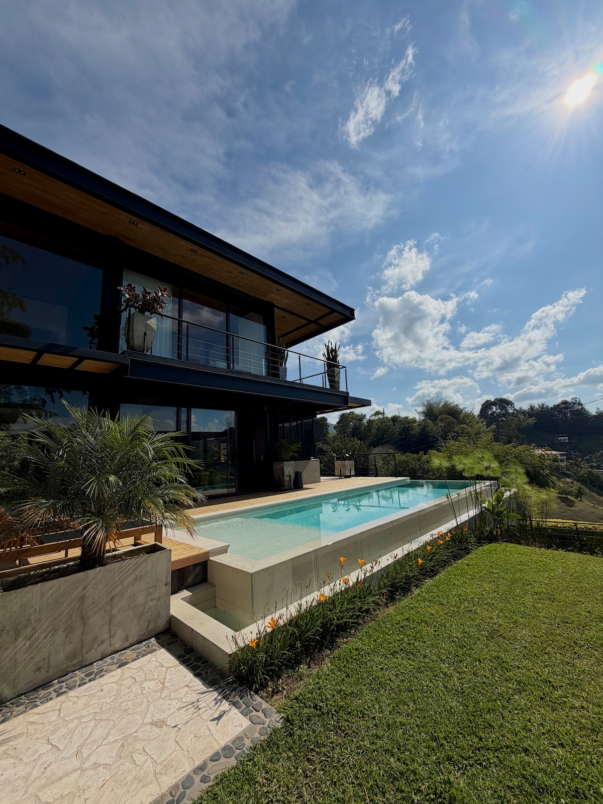 Newly built Modern villa in La Cristalina, perfectly located between Peñol & Guatapé Surrounded by nature with a spring-fed natural pool, 1 hot jacuzzi, 1 hot tub, sun deck, fire pit, & elegant linens Enjoy 5 TVs, WiFi, Netflix, ping pong🏓 badminton🏸 paddle board & a private boat dock Fully equipped chef’s kitchen with dishwasher, high-end appliances, 4 bedrooms, 5 bathrooms garage & all essential services—comfort & nature in one perfect place, deliveries & Airport pick up available (extra$$)