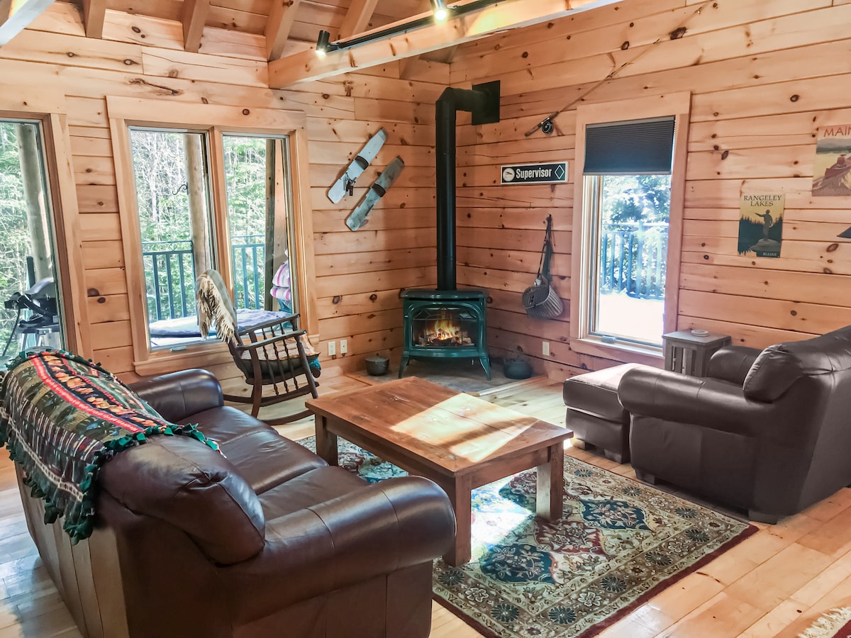 Our GETAWAY-perfect place for relaxing and fun! It’s private but 1/2 mile to IGA and approx 1 mi to beautiful downtown Rangeley with great restaurants, bowling, arcade, darts and shuffleboard. Ltd access to snowmobile trails directly from the house. ATV is no longer allowed from our home. Trails can be accessed from IGA (park across the st., or Depot Rd (includes trailer parking) 3/4 mile from our home. Hiking and incredible scenery! Walking distance to Pickford Pub and mins o Mtn Star Estate.
