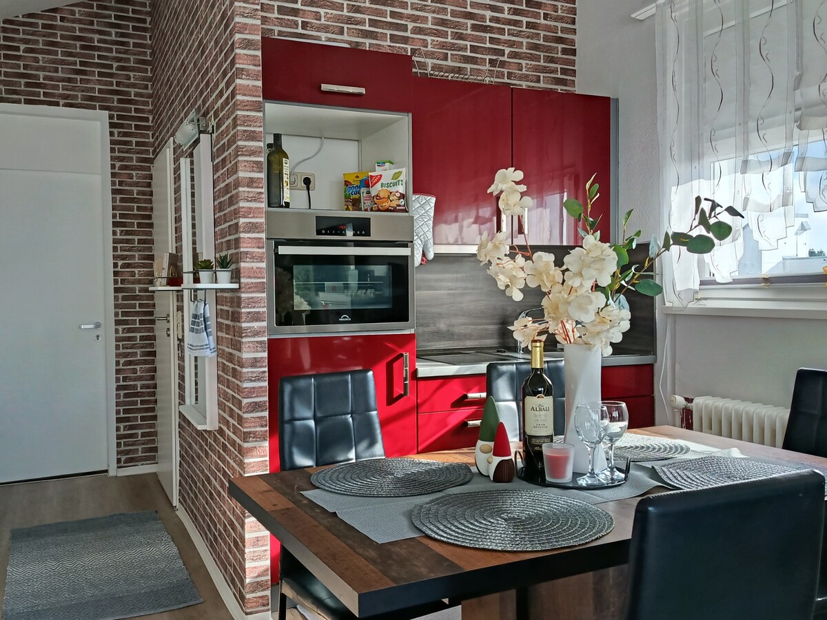 ¿Relajación en verano o más bien en invierno? ¿Tienes la opción de esquiar, hacer senderismo, senderismo, ciclismo de montaña, esquí de fondo? Durante todo el año puedes nadar, sauna, bienestar y, por supuesto, caminar GRATIS con nosotros. Las piscinas, así como los juegos y las instalaciones deportivas, se pueden encontrar tanto en el interior como en el exterior. Lo más destacado del apartamento con terraza es la cocina grande con bloque de cocina, totalmente equipada con una estufa y horno Miele, una nevera grande con congelador y todos los utensilios de cocina que tu corazón desea.